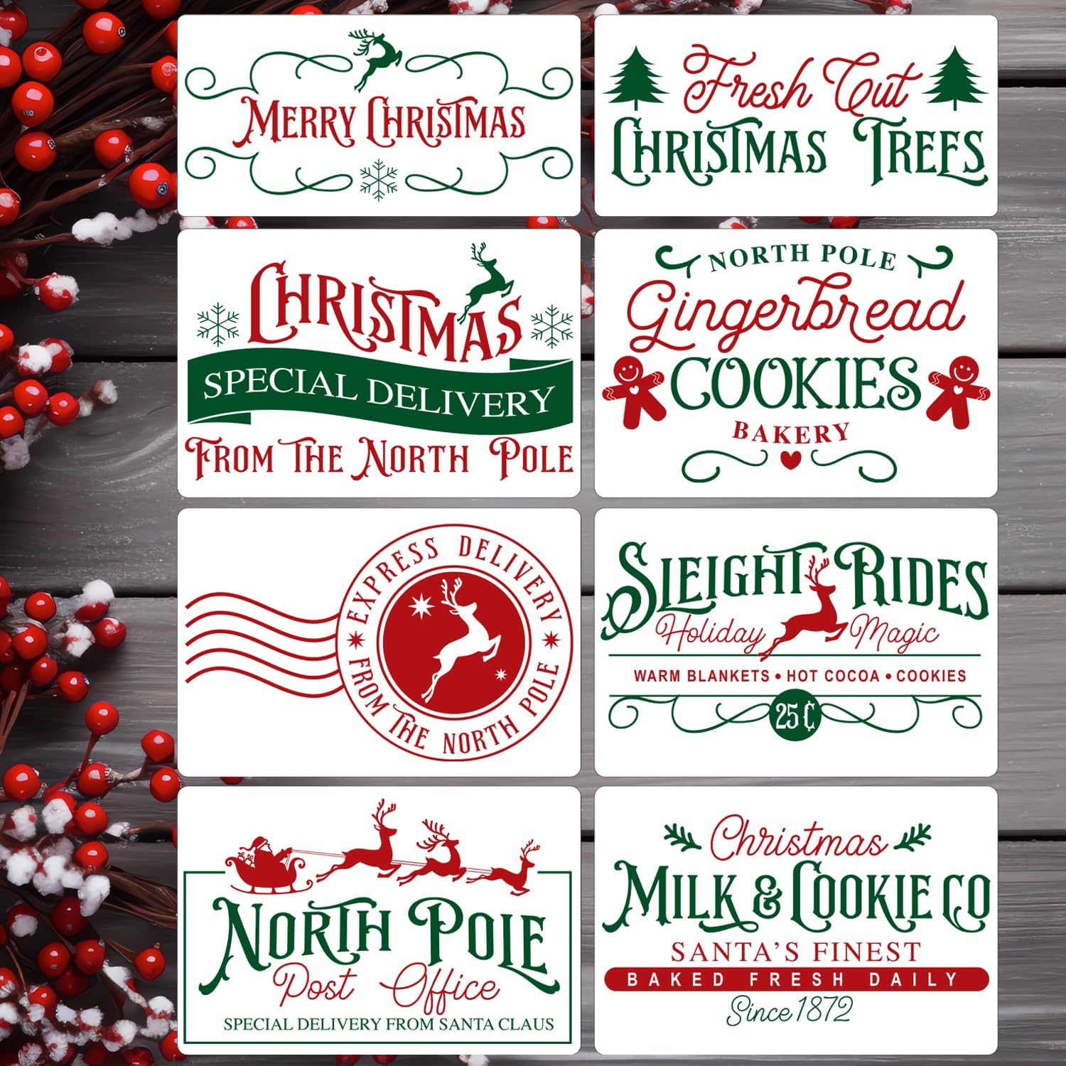 - What You Get:8pcs Christmas Stencils for door mats,the Christmas stencils for wood measures 11.8x6inch and 11.8x8inch.