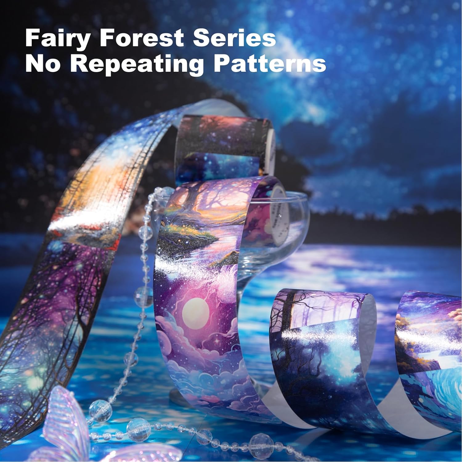 - Whimsical Fantasy Designs: Includes 6 unique rolls with enchanting scenes like moonlit forests glowing mushrooms dreamy skies and magical cottages enhancing depth and storytelling in scrapbook and journal projects