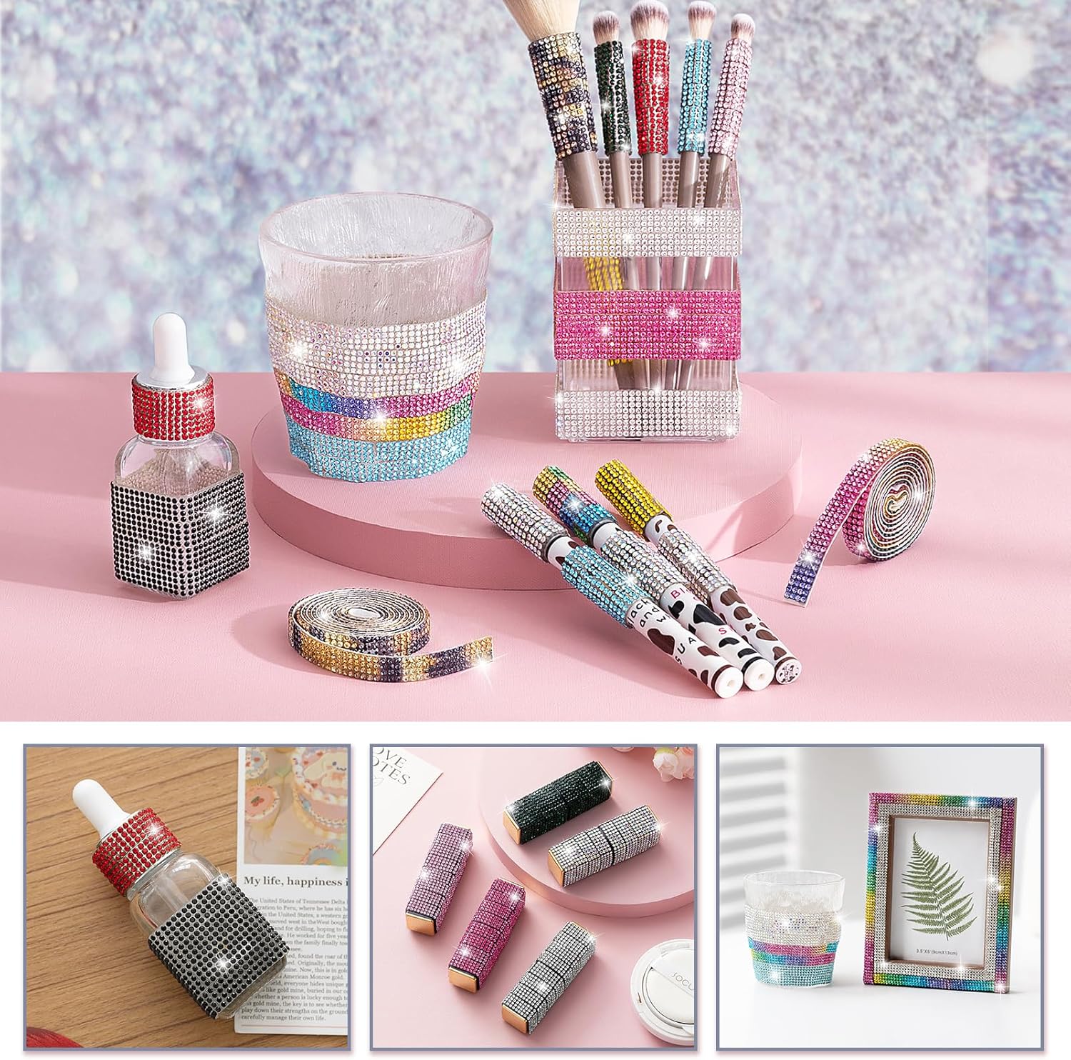 - ăWide Range of UsesăPerfect for decorating cell phone cases, mugs, headphone charging compartments, shoes, cell phone chargers, photo frames, etc. and any other daily items you want to decorate, also suitable for weddings, Christmas, Halloween, birthday parties, Valentine's Day and other special events. This is the perfect gift for friends, family and craft lovers, they will surely marvel at these creative rhinestone strips and the beautiful decorations made with them, unleash your creativity and creativity with these charming diamond ribbons!