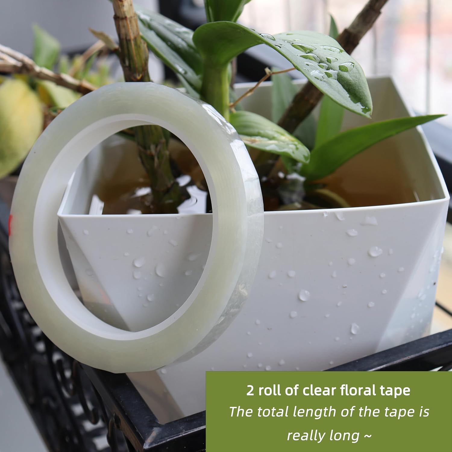 - 🎁 PACKAGING & SIZE— 2 roll of clear floral tape, each with a width of 1.2cm (0.47") and a length of 216 feet.