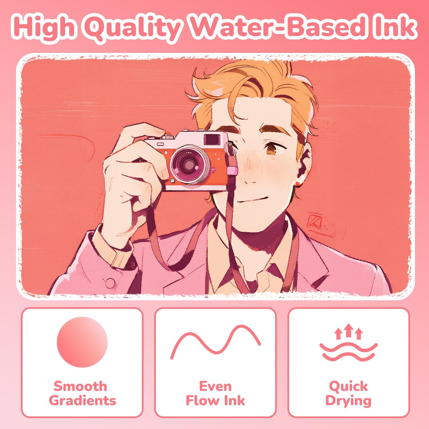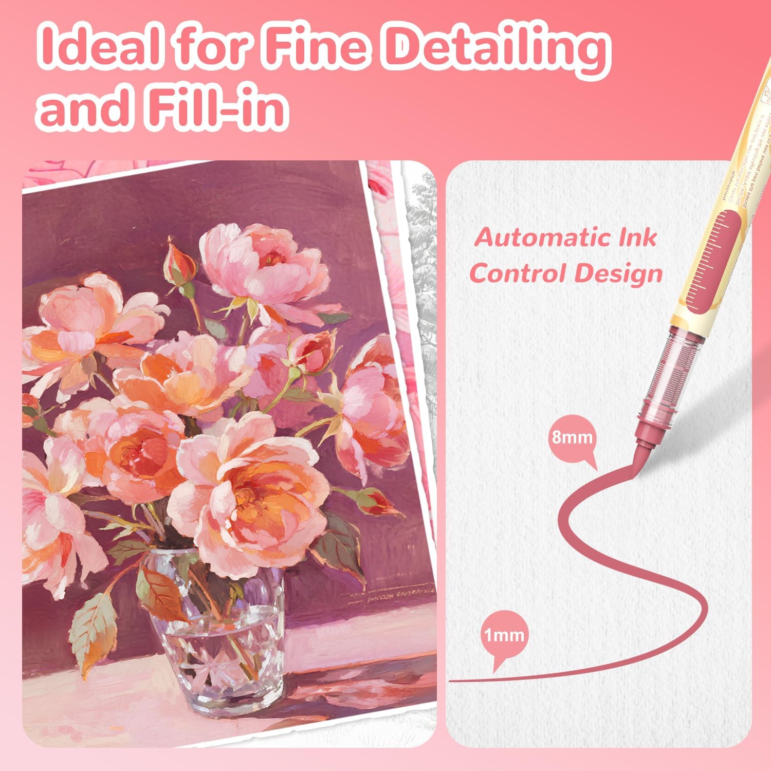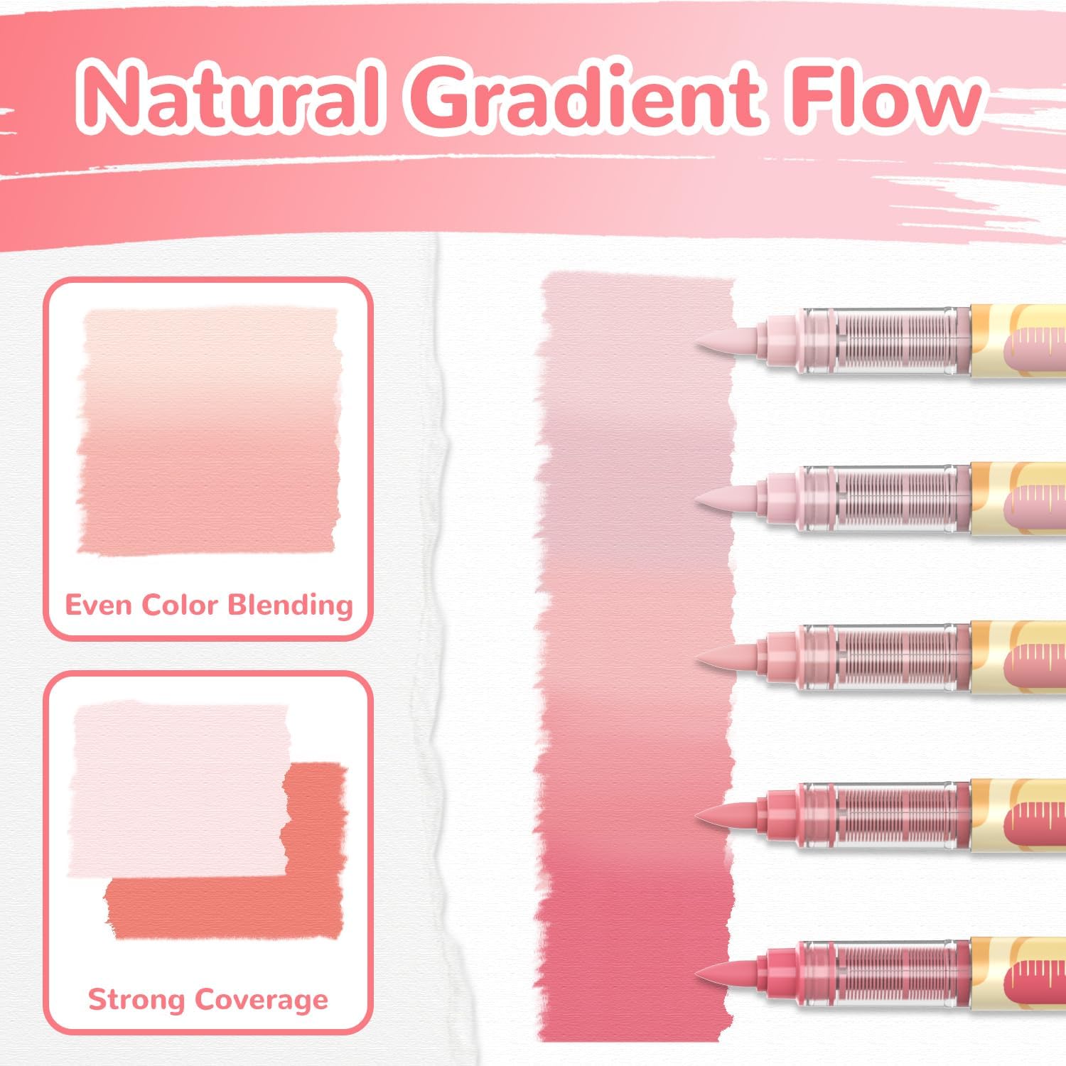 Guangna 12 Pink Skin Series Acrylic Paint Markers Set, Brush Tip Acrylic Paint Pens for Rock Painting, Wood, Glass, Paper, Coloring Book, Ceramic, Canvas, DIY Crafts, Water-Based Ink