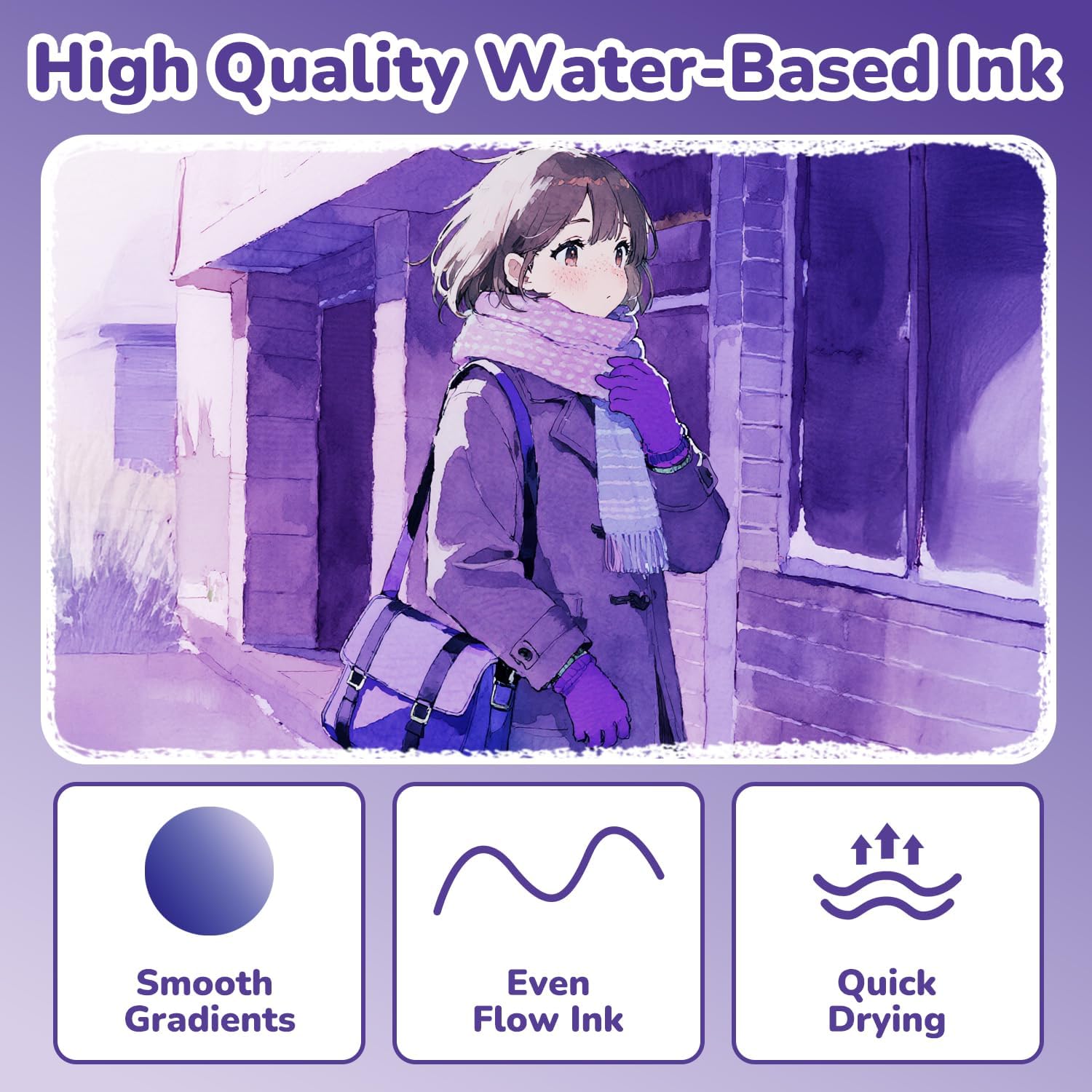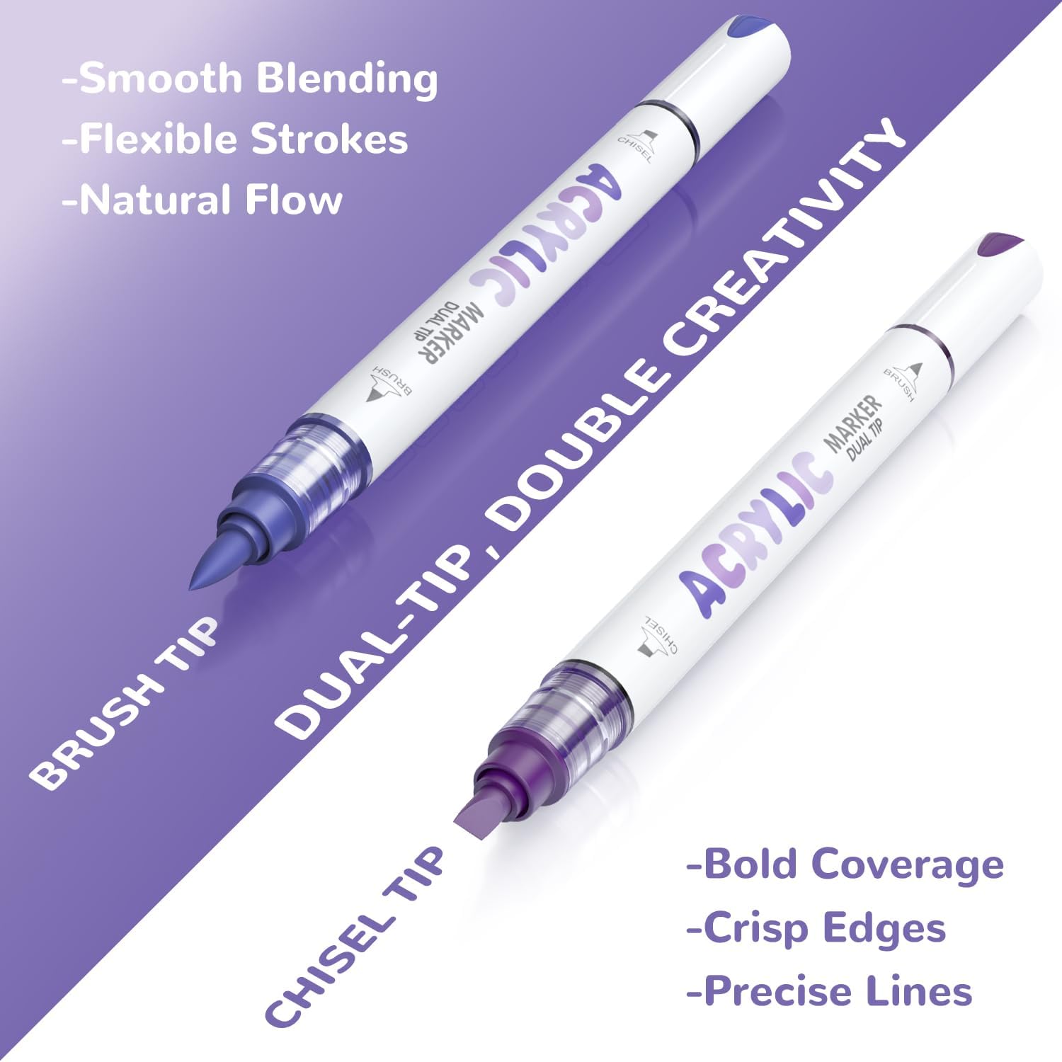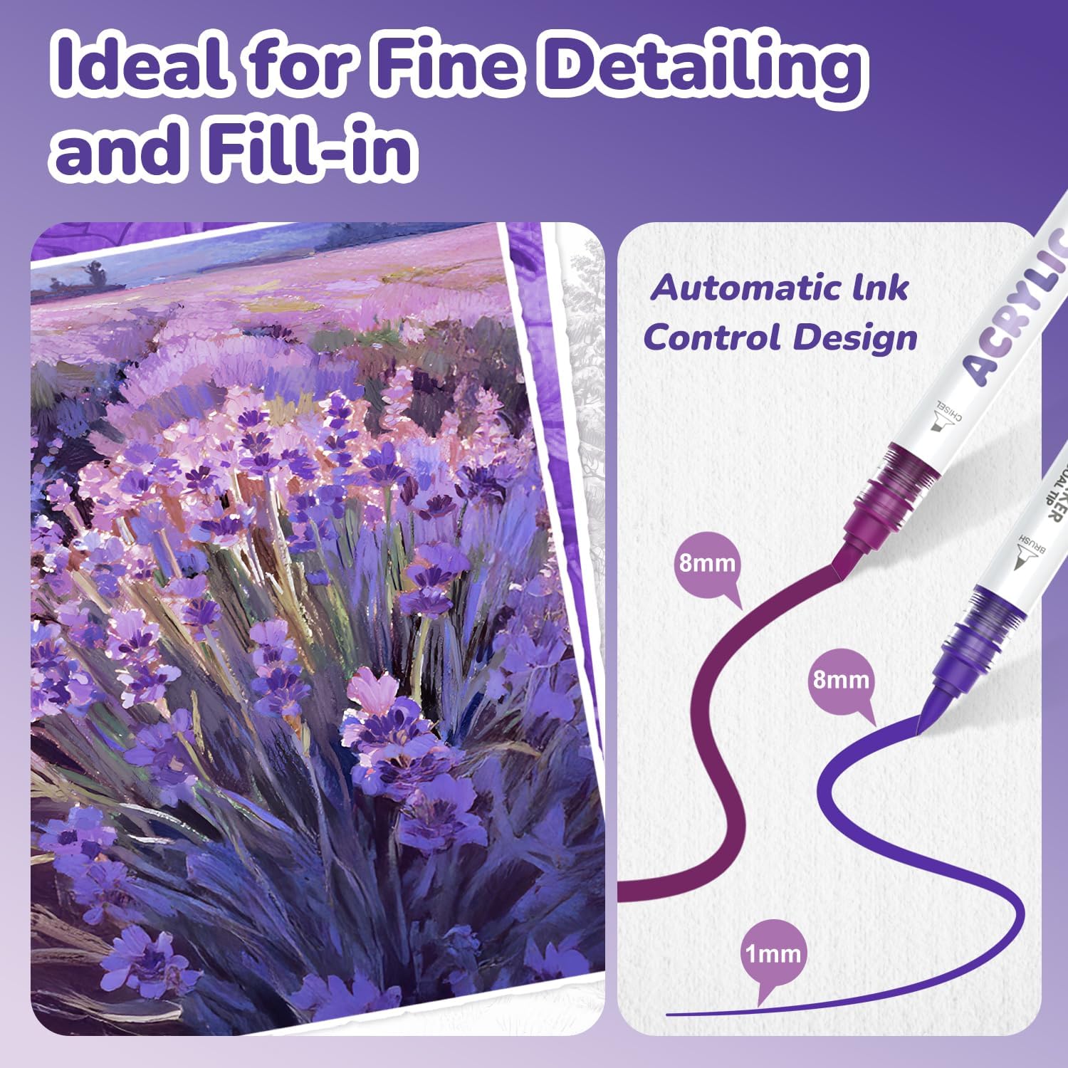 Guangna 12 Purple Dual Tip Acrylic Paint Markers, Brush Tip & Chisel Tip Acrylic Paint Pens for Rock, Wood, Glass, Paper, Coloring Book, Ceramic, Canvas, Water-Based Ink