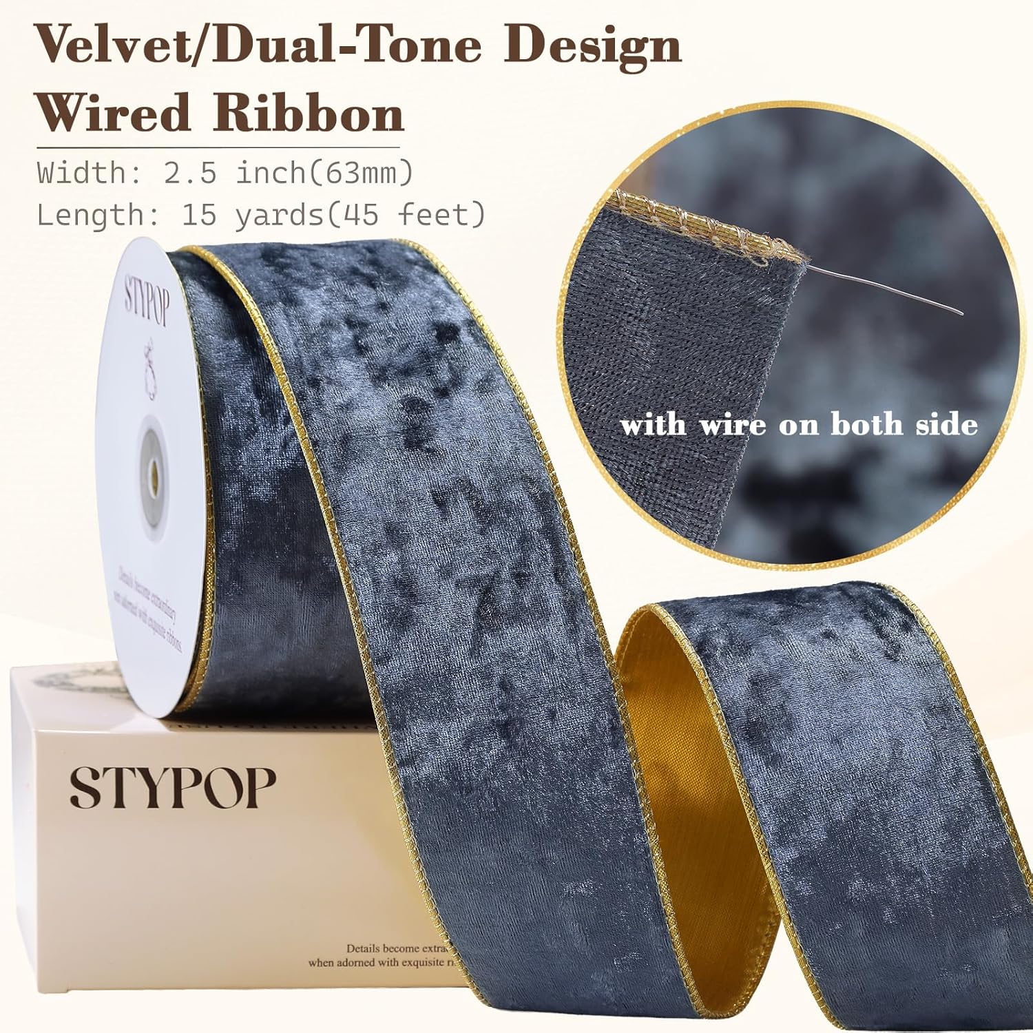 Dusty Blue Christmas Velvet Ribbon Wired (2.5" × 15 Yards) - Christmas Ribbon for Christmas Tree Decoration/Gift Wrapping/Crafts Wreaths Supplies