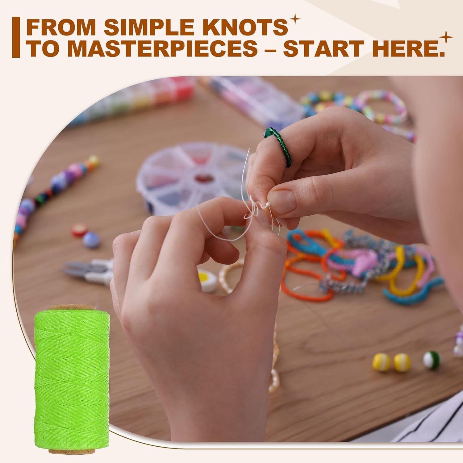 - Instruction: Use scissors to cut the cord to your desired length.After production, lightly melt the ends with a flame to prevent unraveling for clean edges (Note: Not recommended forIndustrial-grade applications (e.g., climbing or towing).For best results, pair with appropriate beads, clasps, or crafting tools.)