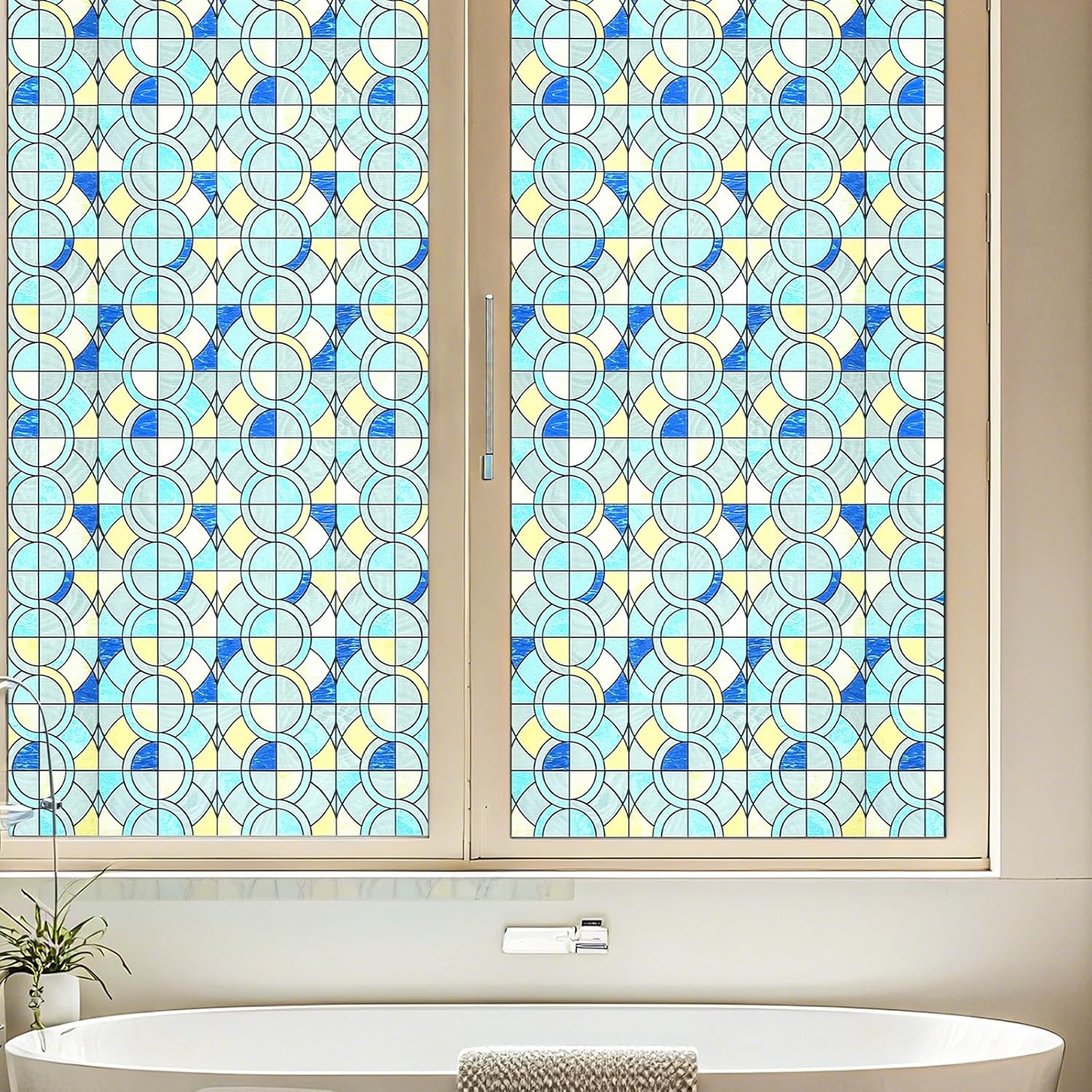 - Elegant Design of Geometric Rings: Transform your windows with our delicate and elegant geometric rings patterned glass window film. This decorative film uses simple, bold lines to construct a pattern blending geometric rings, providing privacy while adding a touch of classical elegance to any space. It makes the perfect stylish addition to your home or office décor.