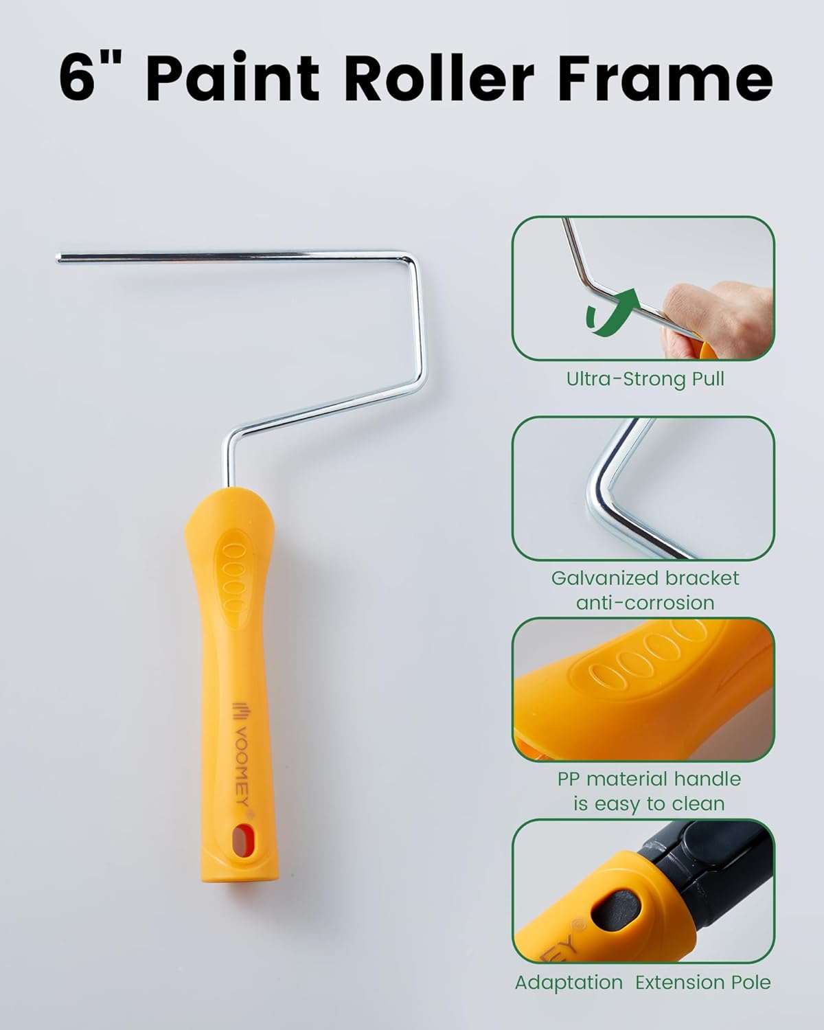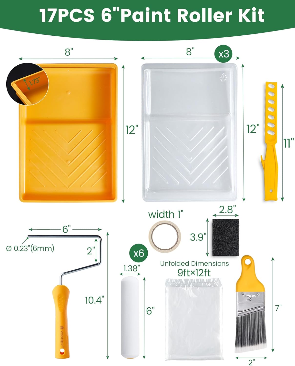 Voomey 17 Pcs 6 Inch Foam Paint Roller Kit with Angle Paint Brush,Paint Tray with Liners,Paint Kit for Painting Walls,Cabinet,Trim