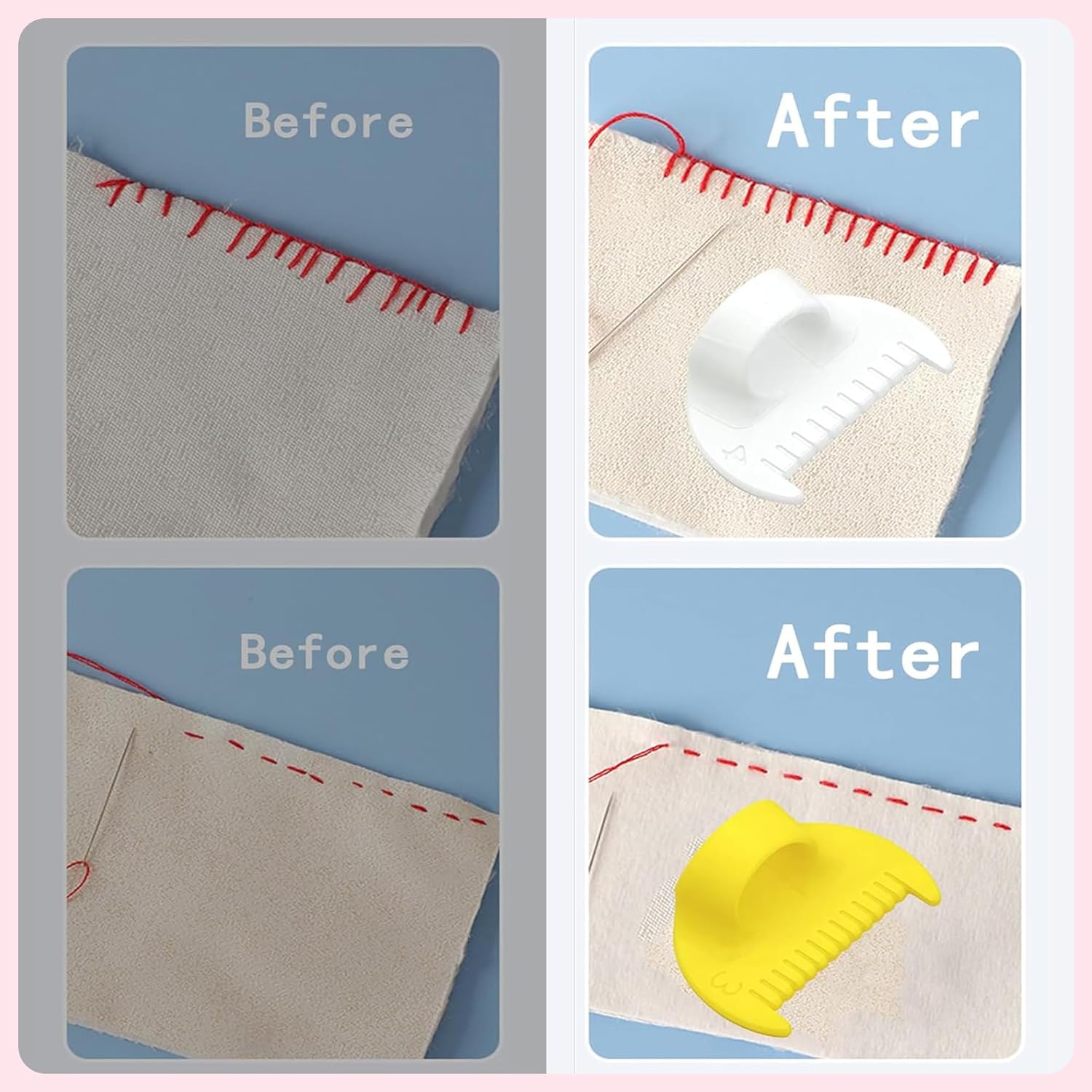 - All-in-One Efficiency​​: Replaces four specialized tools—edge guide, fabric spacer, material template, and needle positioner—to eliminate workspace clutter. Available in four vibrant colors (yellow/white/pink/blue) for personalized workflow customization.
