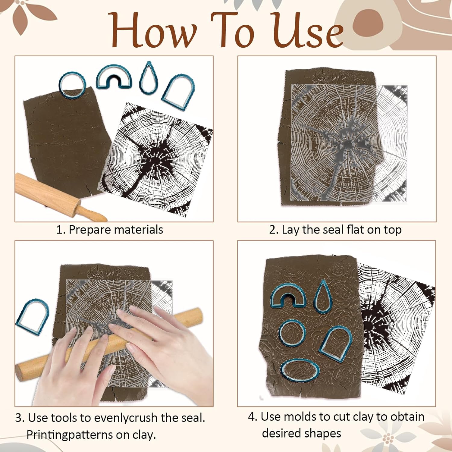 - How to Use: Roll the prepared polymer clay into flakes and place it on the clay texture mat and roll it on top to get a clear solid texture, and then colour it with a variety of colours. This clay texture stamp is beautifully detailed and is the perfect finishing touch to a clay plate