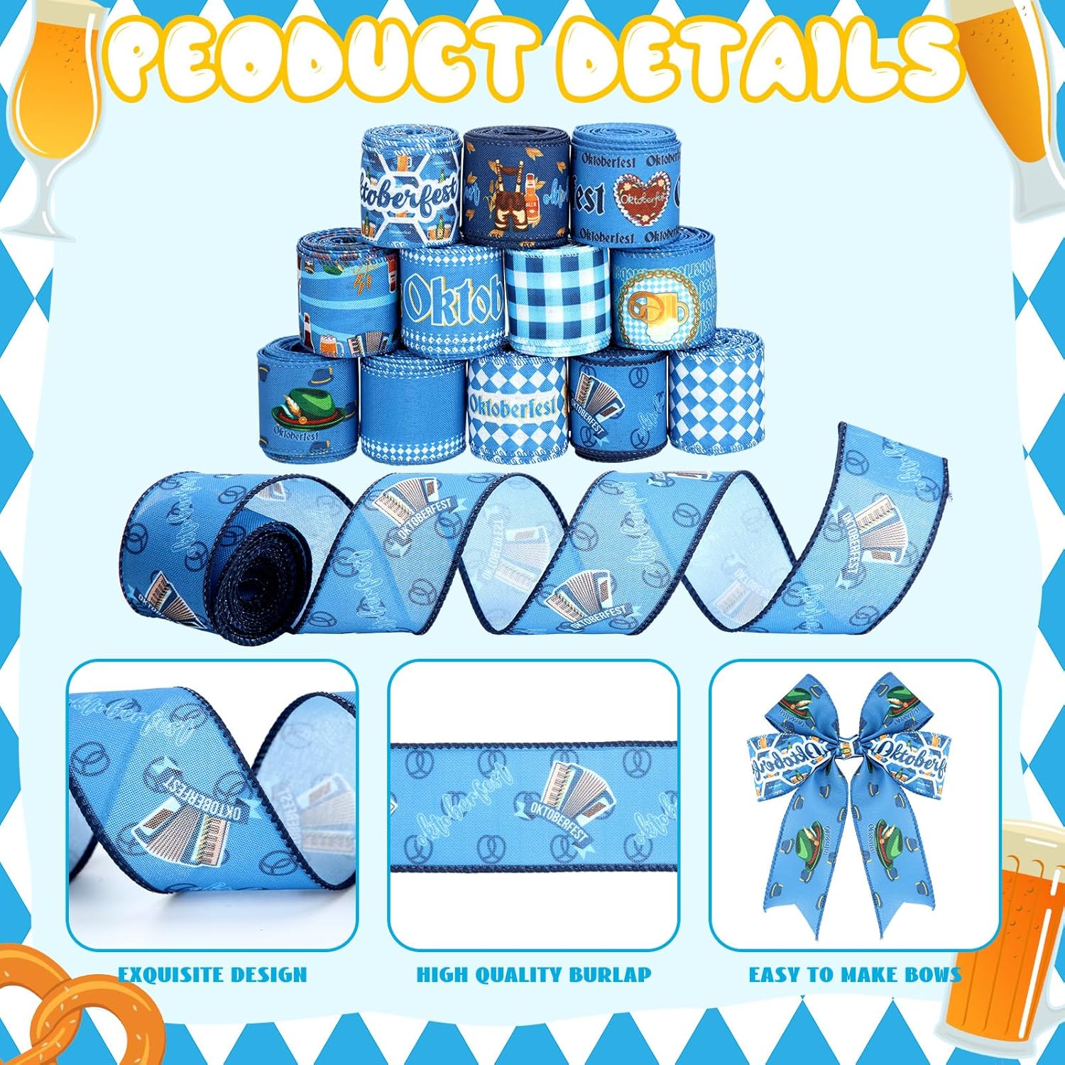 - Ample Quantity and Ideal Size: crafted to meet your decoration needs, our Oktoberfest ribbon comes in a set of 12 rolls, providing ample supply for all your needs; Each roll is approximately 5 yards long and 2 inches wide, providing you with ample ribbon to create beautiful Oktoberfest crafts and decorations