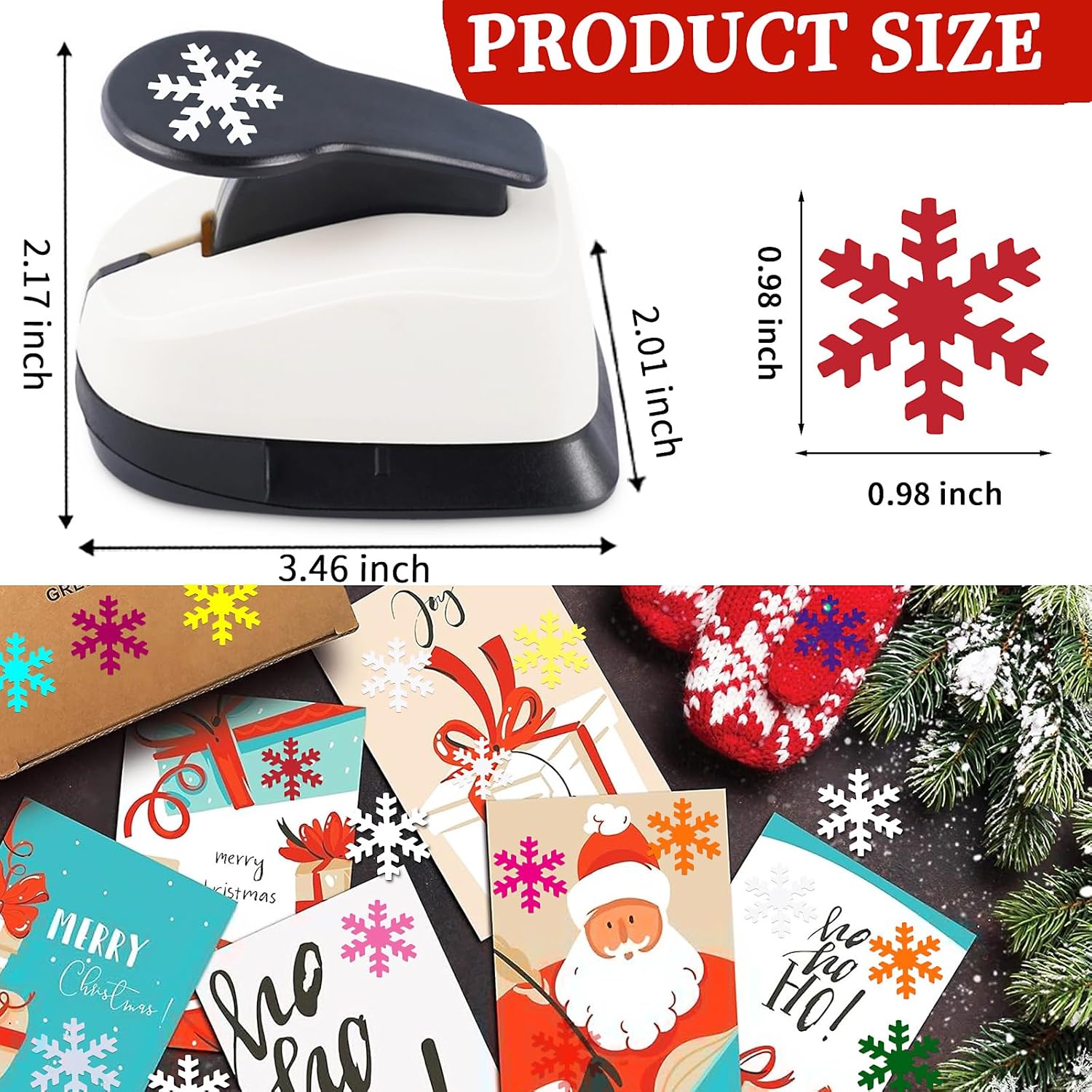 - Snowflakes Hole Punch: The size of snowflake paper punches for crafting is 3.46x2.17x2.01 inch. The size of punch shape snowflake is 0.98 inch. The Christmas snowflake punch is made of ABS and zinc alloy. Create unique DIY paper artworks for Christmas with the snowflake shape punch