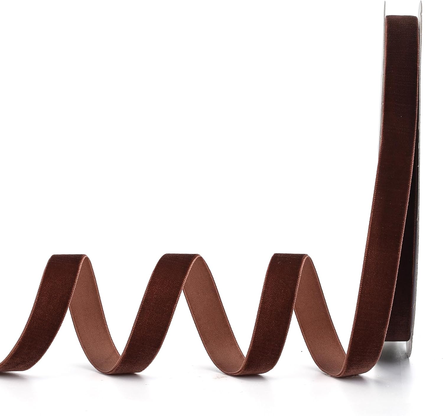 Coffee Velvet Ribbon,5/8" W x 20Yd Single Face,Great for Gift Wrapping,Hair Bows,Handmade Craft and Christmas,Wedding Decoration (5/8" Coffee)