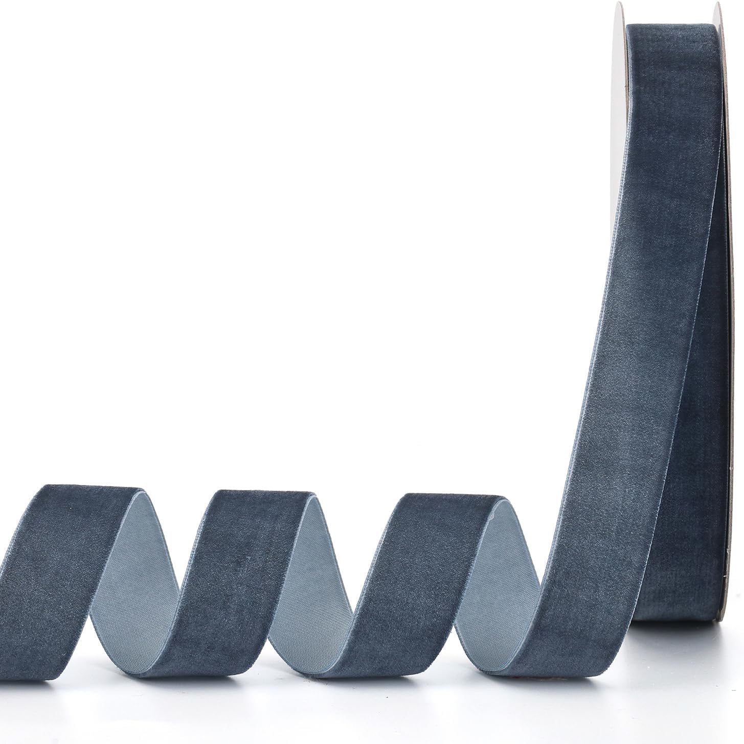 Dark Dusty Blue Velvet Ribbon,1" W x 20Yd Single Face,Great for Gift Wrapping,Hair Bows,Handmade Craft and Christmas,Wedding Decoration (1" Dark Dusty Blue)