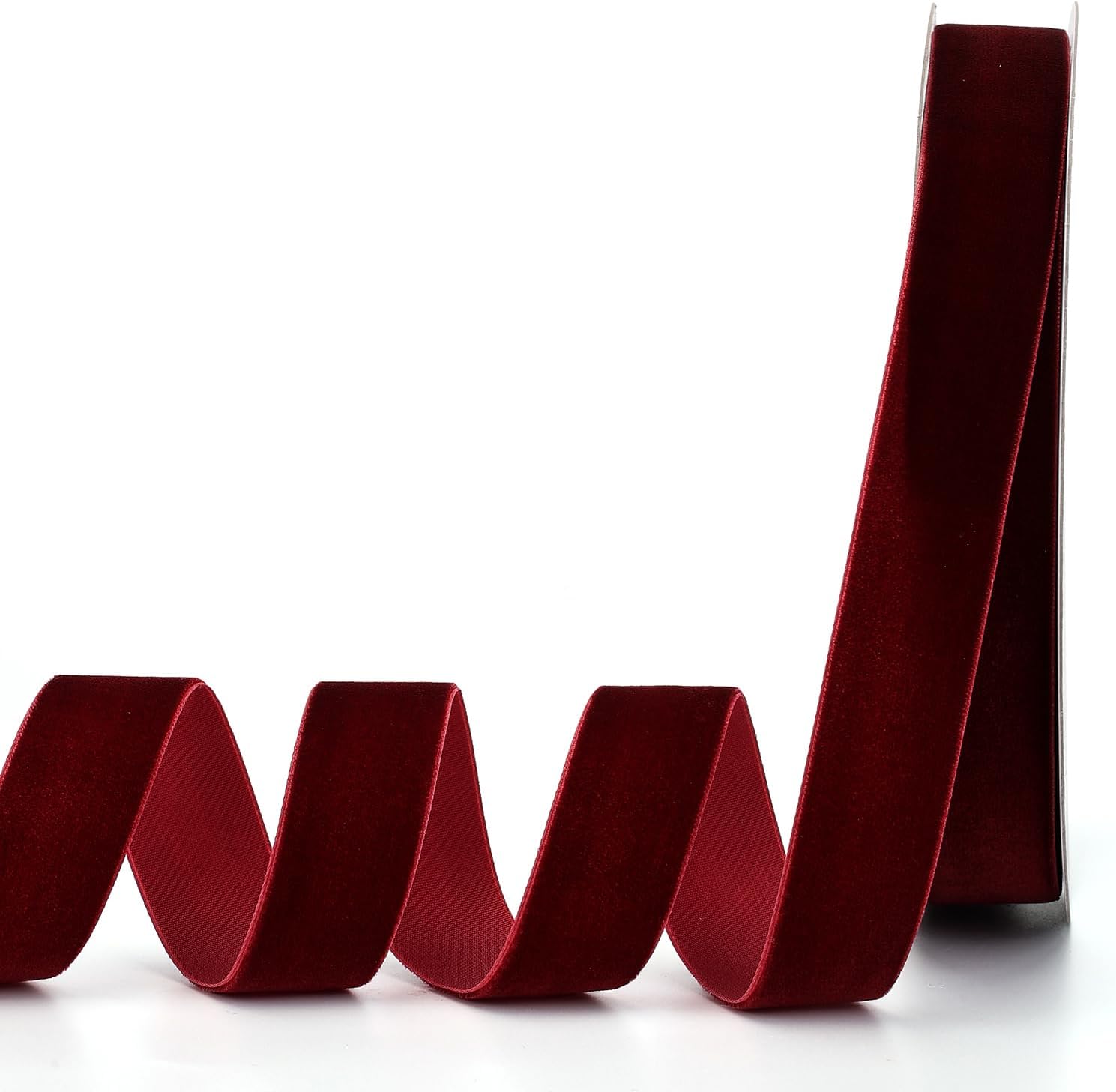 Burgundy Velvet Ribbon,1" W x 20Yd Single Face,Great for Gift Wrapping,Hair Bows,Handmade Craft and Christmas,Wedding Decoration (1" Burgundy)