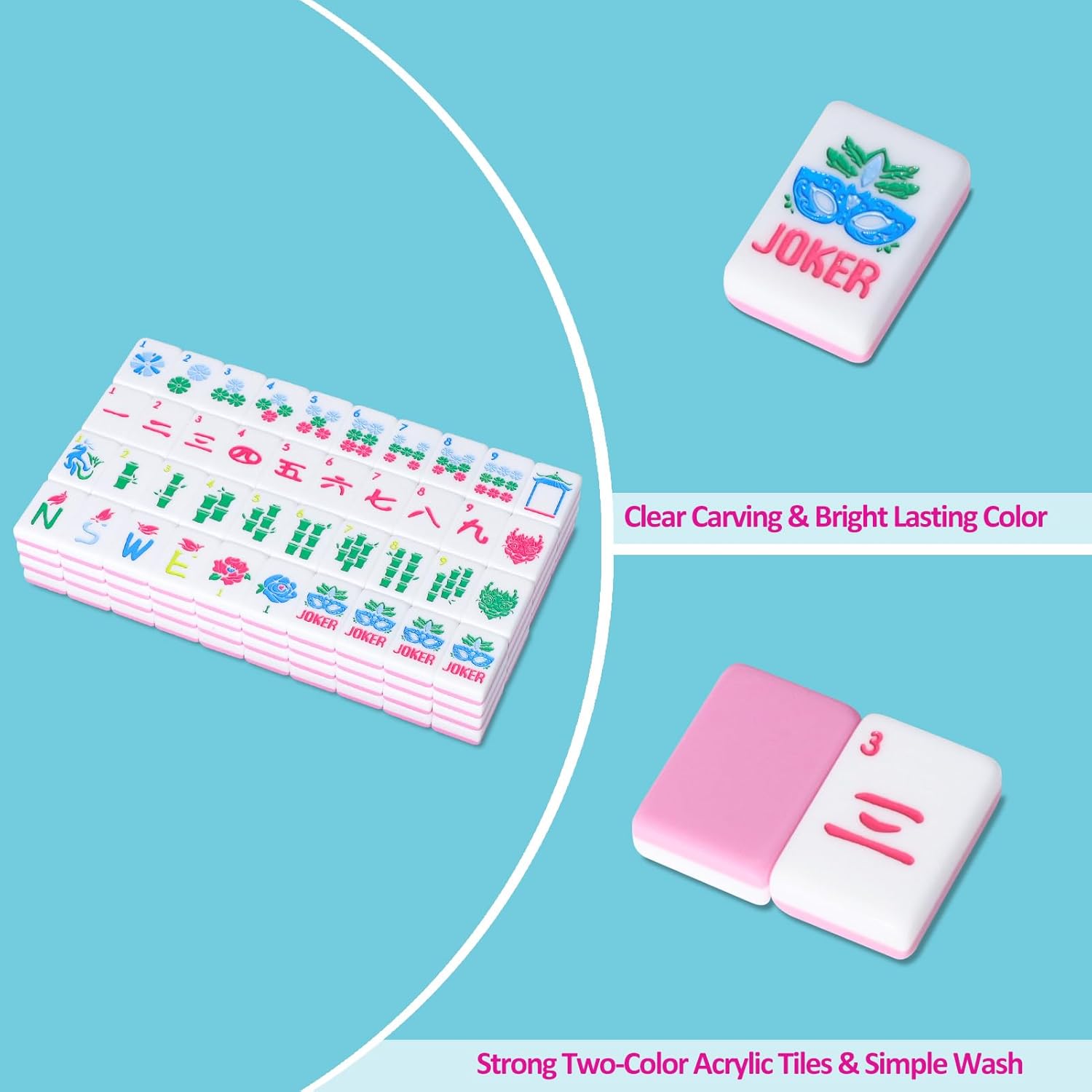- Clear Engraving: Engraved Mahjong tiles feature easy-to-read designs in vibrant colors that resist fading—suitable for both beginners and experienced players.