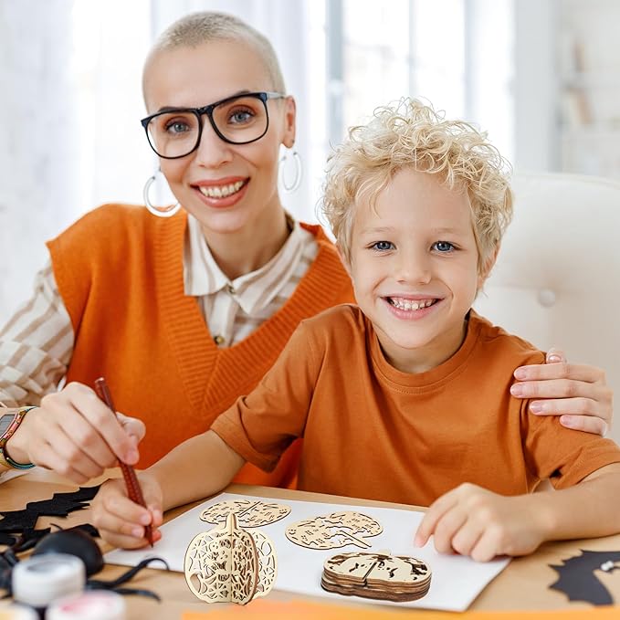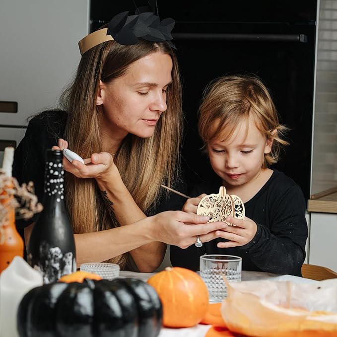 COCHIE DIY 3D Halloween Pumpkin Wood Crafts to Paint for Kids Adults, Paintable Unfinished Wooden Slices for Craft, Cutouts Ornaments for Painting Decorations (24 PCS)