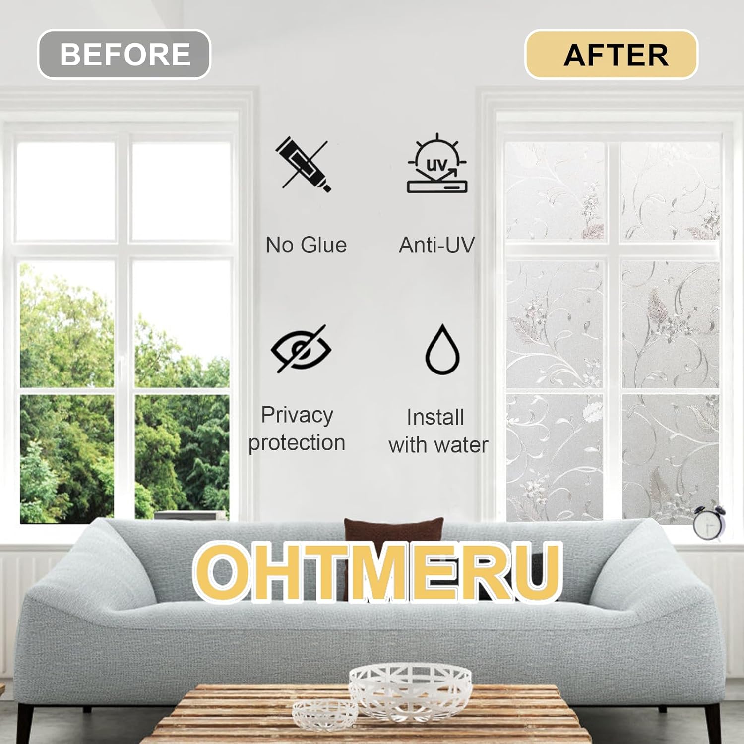 - Artistic Design - OHTMERU Window Privacy Film brings the beauty into your living space. Its graceful and luminous design casts soft, natural light, creating a serene and sophisticated atmosphere. Perfectly versatile, it adds elegance and charm to any window.