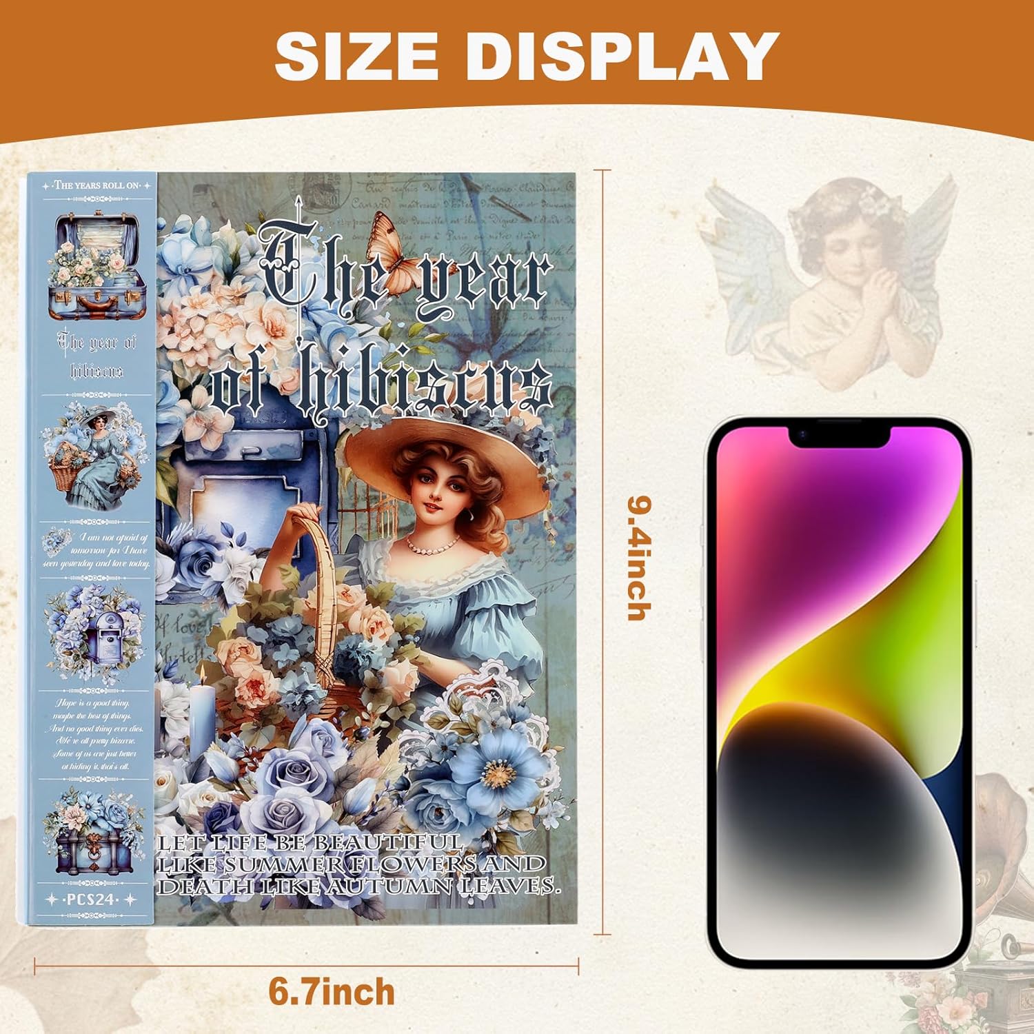 - Our vintage scrapbook stickers feature a variety of motifs, including women, girls, blue flowers, carriages, sofas, pianos, sewing machines, telephones, castles, tables, and chairs. Use them to add a personal touch to your scrapbook pages. They add color, texture, and visual interest, making your scrapbook more aesthetically pleasing.