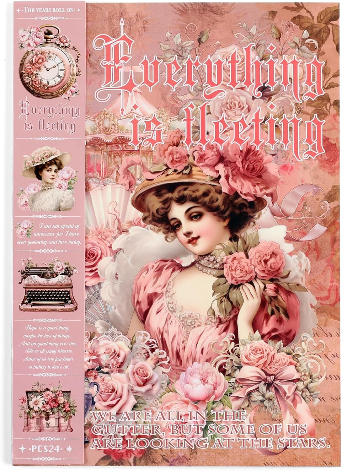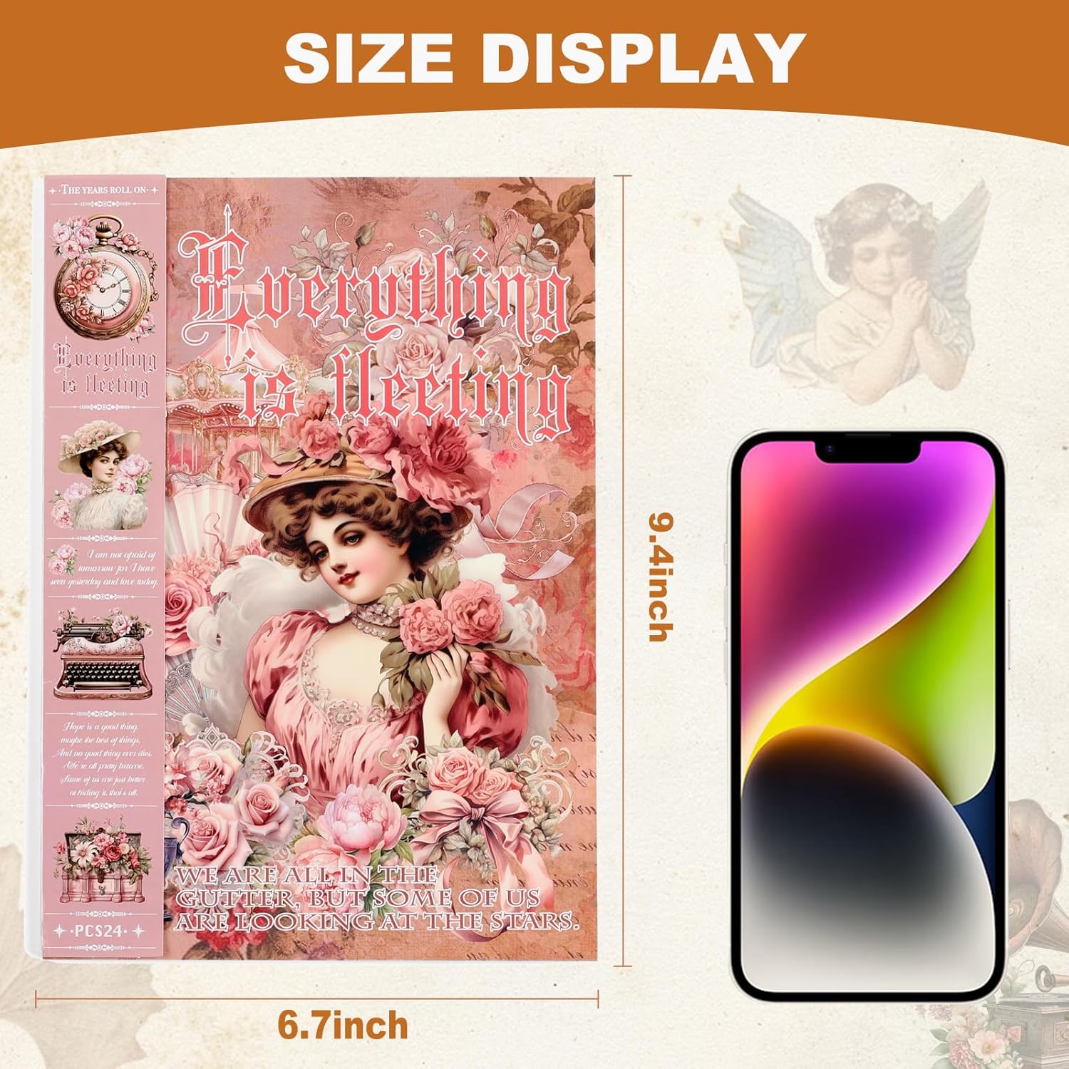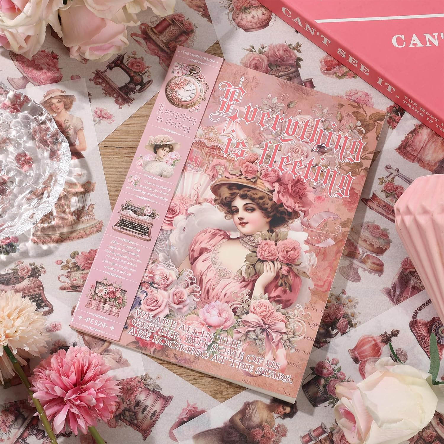 Vintage Ephemera Sticker 24 Sheets precut 300 washi Stickers Paper People Journal Stickers for Adults Junk journaling Sticker Book Scrapbooking Supplies