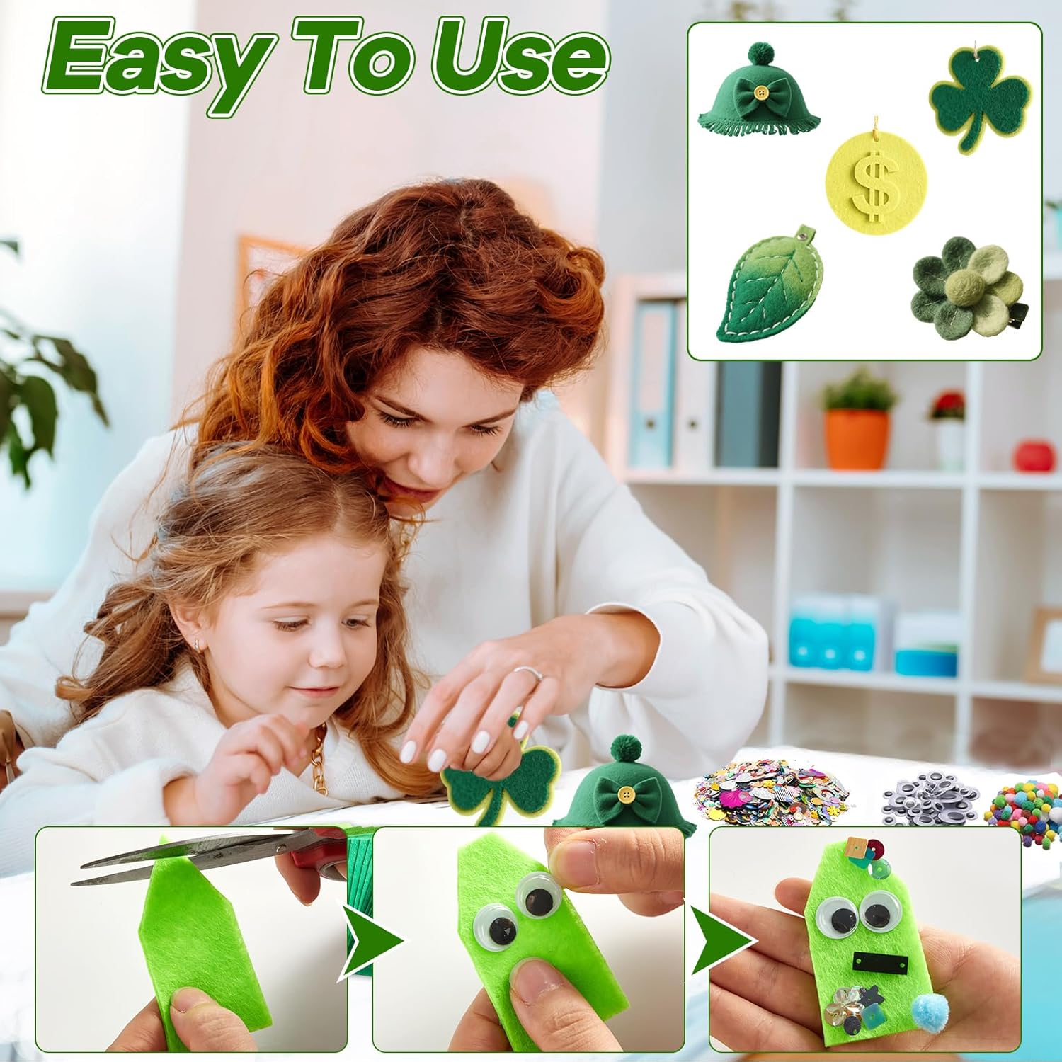 - Develop Learning Skills: Engaging in crafting with this St. Patrick's Day felt fabric set helps children build essential skills such as teamwork, concentration, and hand-eye coordination. As they create their own projects, they’ll enhance their problem-solving abilities and improve focus. This felt fabric for projects is an excellent way to encourage learning through play, offering both cognitive and motor skill development while having fun.