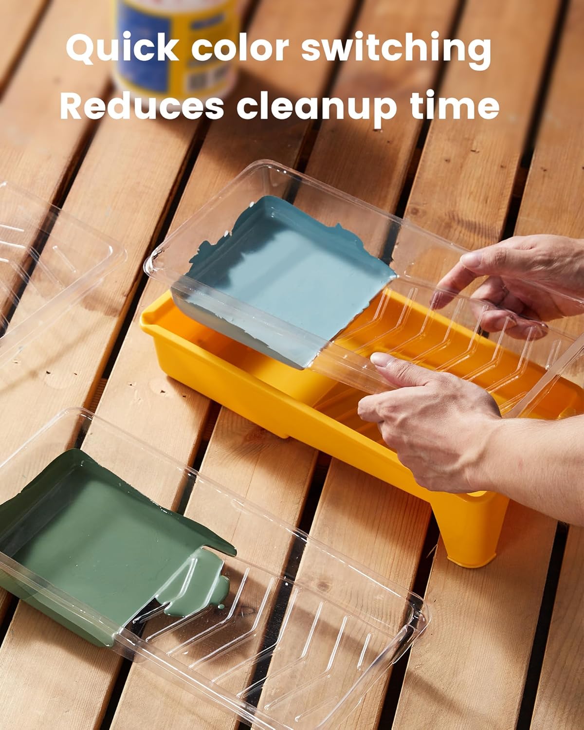 - Complete 14-Piece Kit: This set comes with 1 durable plastic paint tray, 12 liners, and 1 sturdy 4" roller frame, providing everything you need for precise painting projects