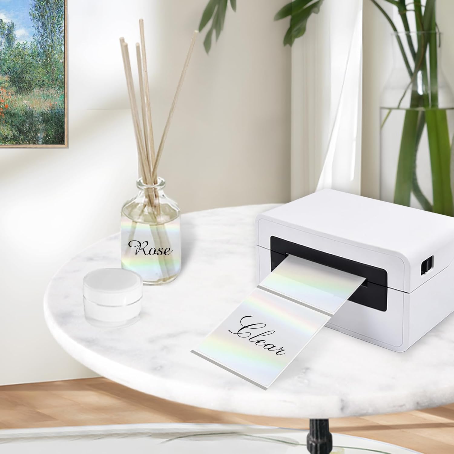 - Transparent Holographic Thermal Label, The color of the surface of the sticker can be changed under the light with the move, which is beautiful and charming