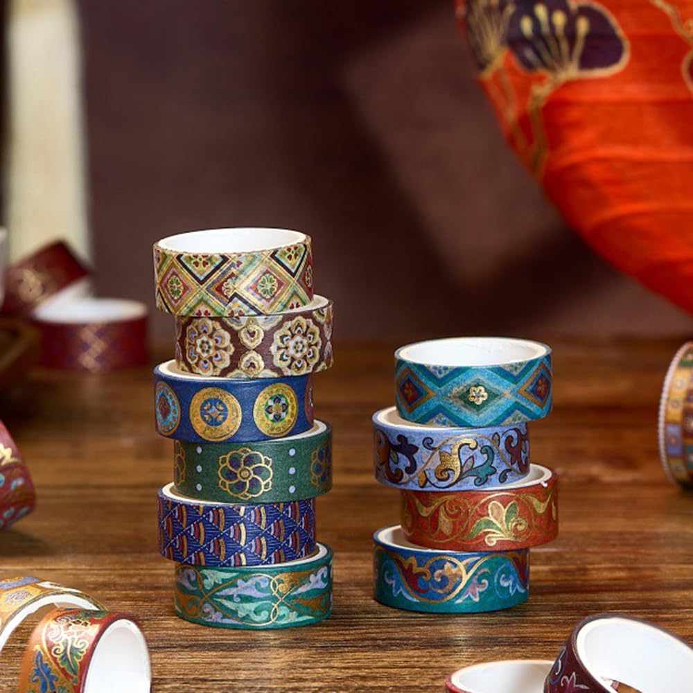 - Chinoiserie Patterns Design: With 10 different gold foil rolls with floral and geometric patterns. These washi tape will add charm to your art crafts.