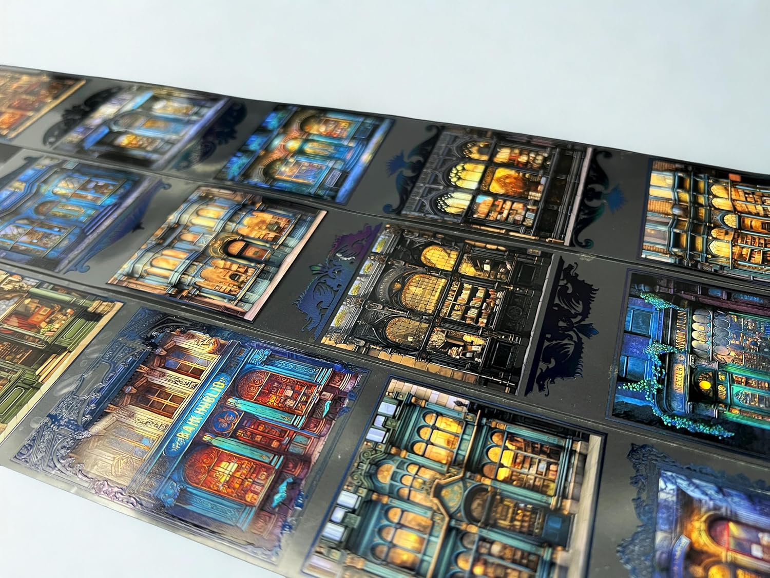 - RICH DETAIL WITH GLOSS FINISH – The transparent PET tape features a shiny overlay with a bold black gloss layer that enhances contrast, giving each storefront illustration depth and a dramatic visual effect.