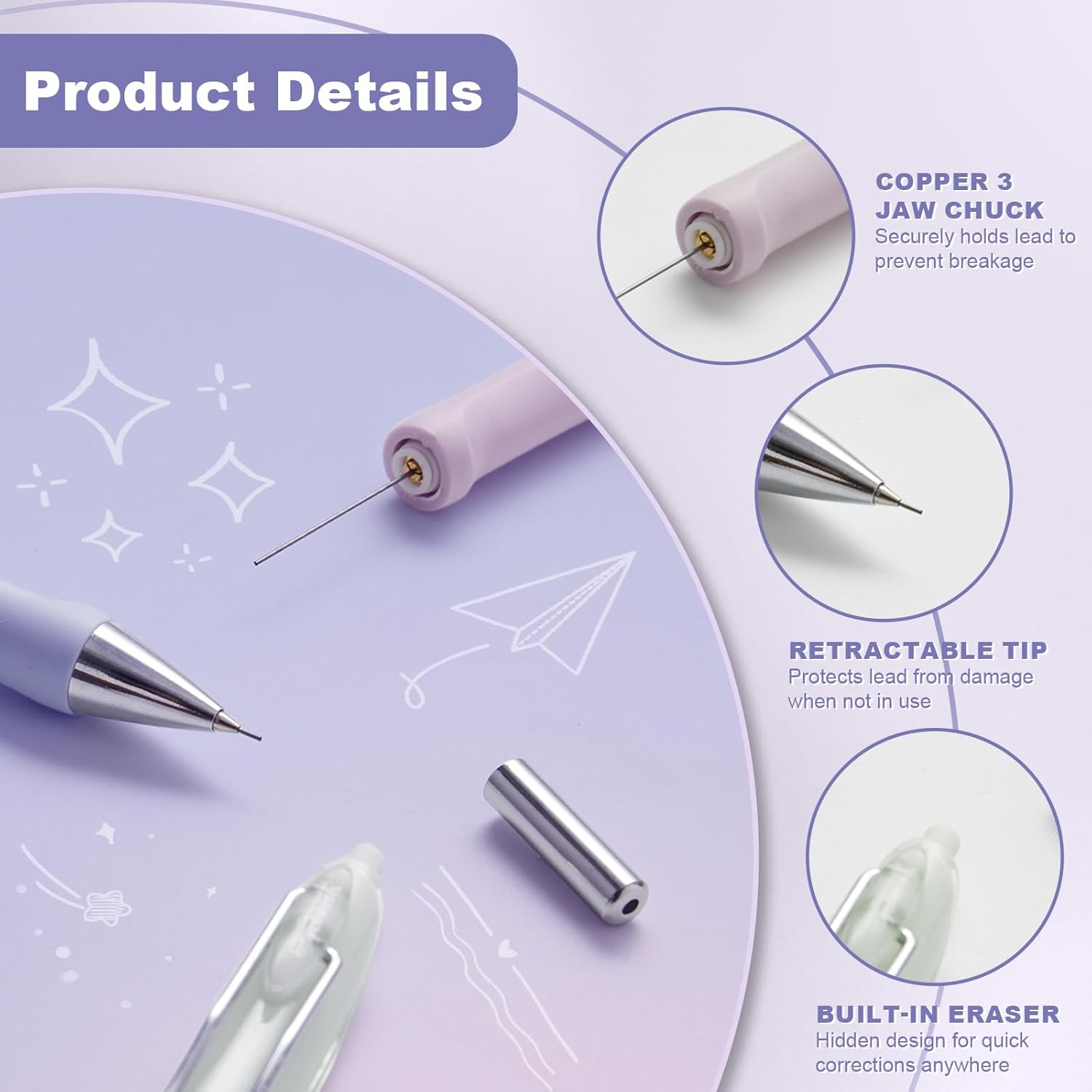 - 💎 【Copper 3-Jaw Chuck – Durable & Break-Resistant】 Securely holds the lead in place to minimize breakage. Built with premium copper, it's more stable and long-lasting than plastic alternatives.