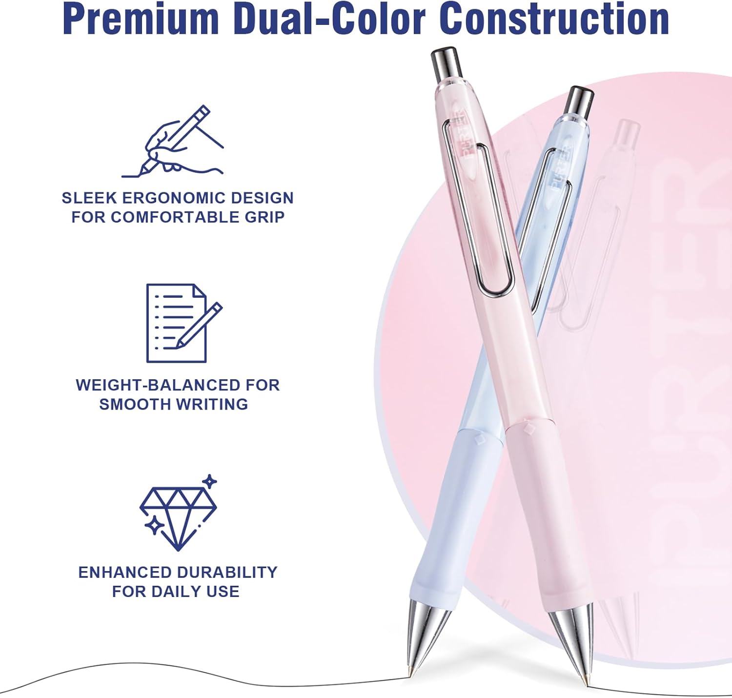 - 🖐️ 【Ergonomic Comfort Grip & Hidden Eraser】 Soft, non-slip TPR grip helps reduce writing fatigue. The built-in eraser is neatly hidden under the cap—perfect for on-the-go corrections.
