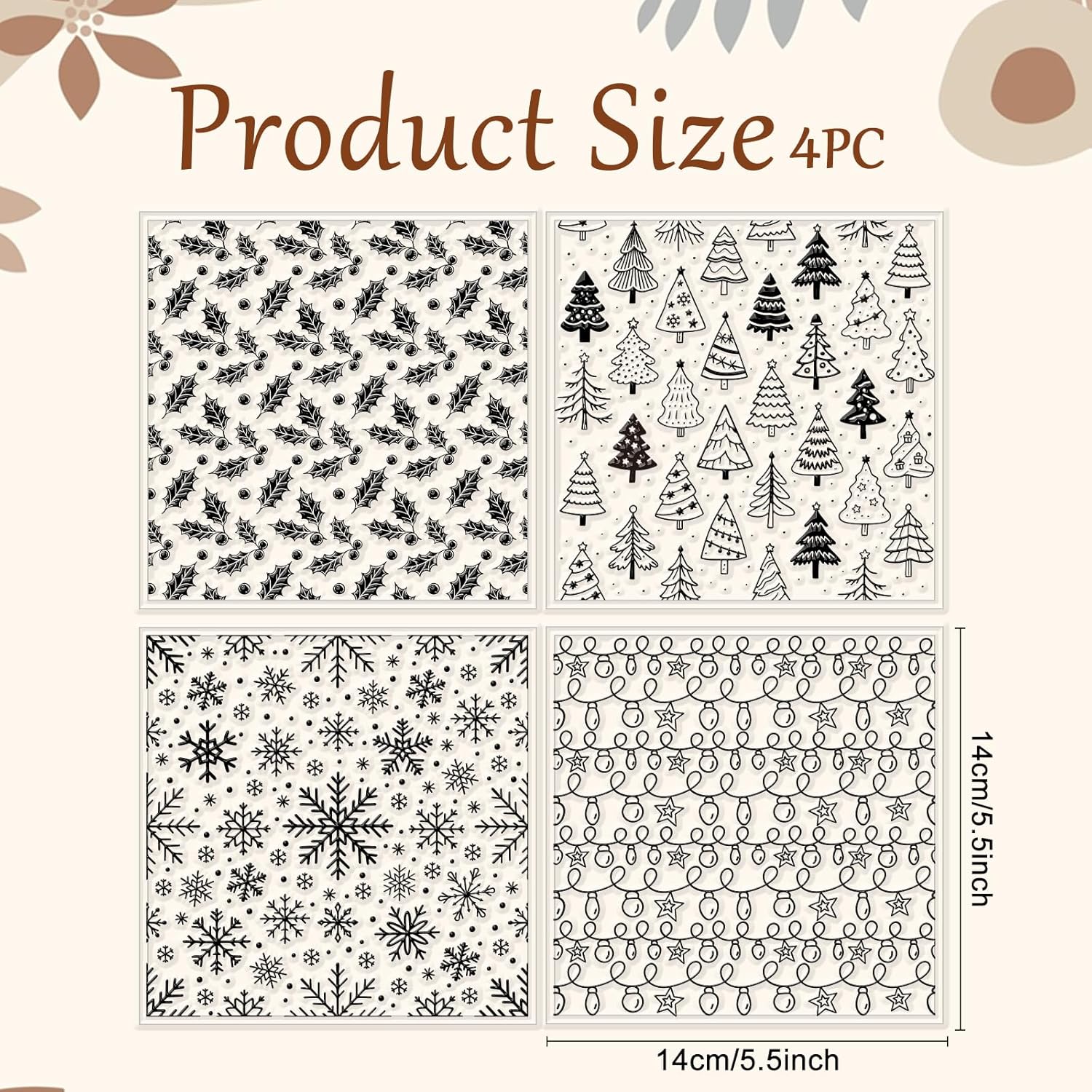 CHGCRAFT 4 Pcs Christmas Elements Polymer Clay Texture Sheets Snowflakes Silicone Texture Stamp Pine Trees Clay Texture Mat Modeling Pattern Pad Sheets for Jewelry and Earrings Tools, 5.5x5.5 inch
