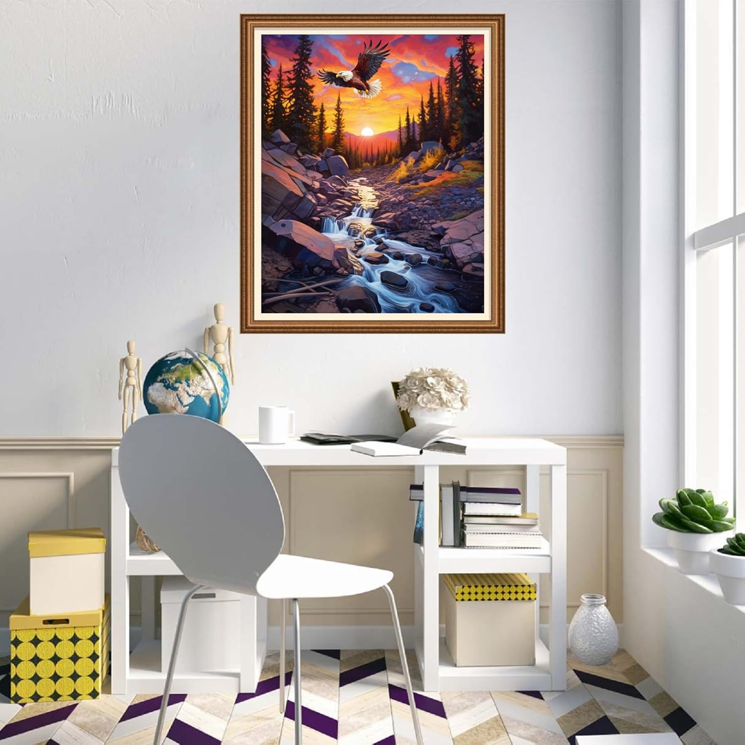 Disnesart Cross Stitch Stamped Full Embroidery Kits DIY 11CT Cotton Thread Printed DIY Needlepoint Kits Craft Needlework Set Cross-Stitch Stamped Sets-Sunrise Eagle 16x20 inch