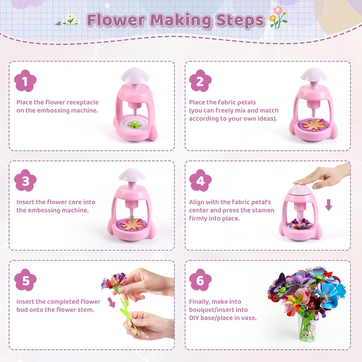 Bsgifts Fabric Flower Making Toys, DIY Flower Press Kits for Kids Ages 3-12, Creative Educational Activity Arts & Crafts Toys, Ideal Holiday Gifts for Preschool Kids, Pink