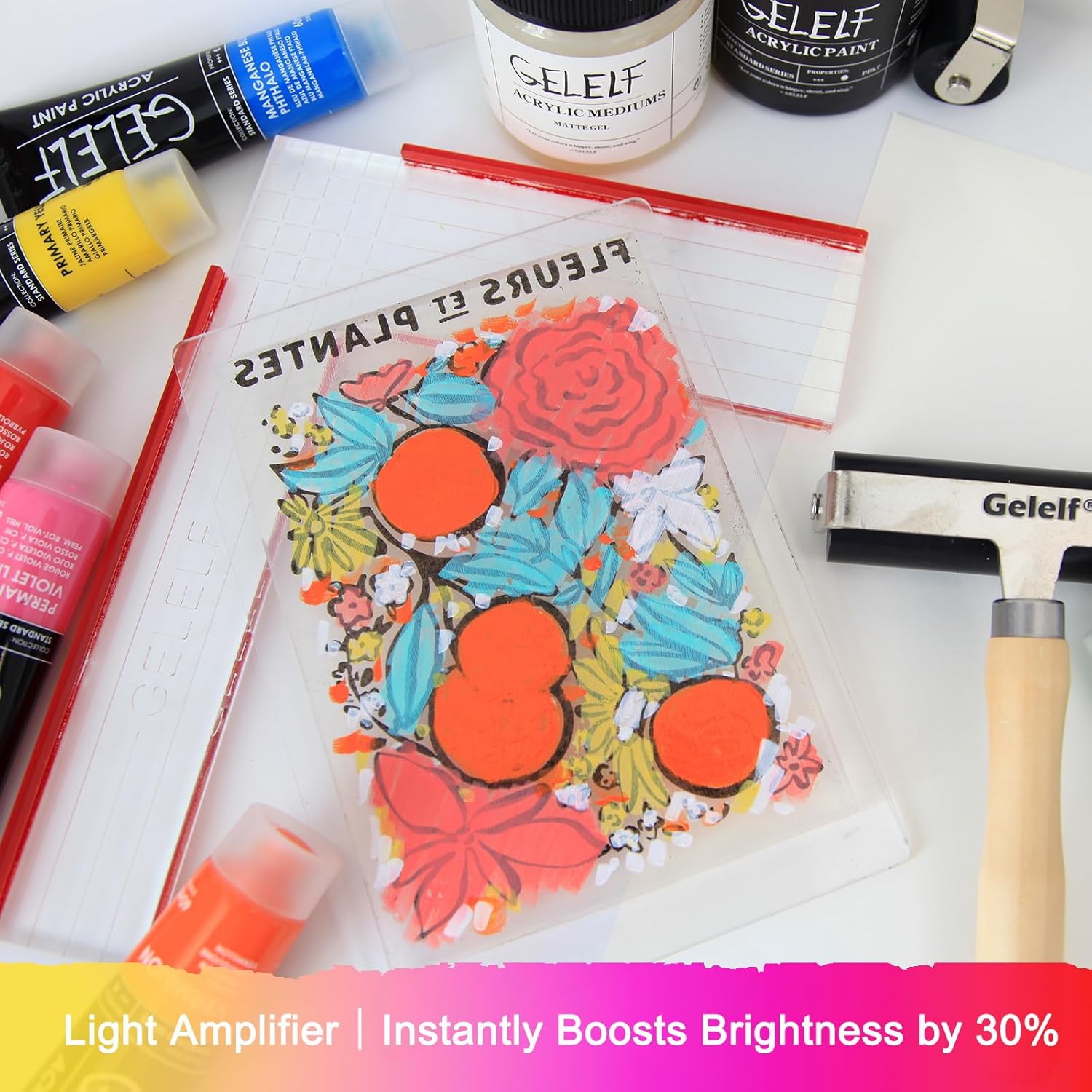 - Enhances your gel plate printing results by improving paint adhesion and making it easier to lift even stubborn or partially dried paint layers cleanly onto paper.