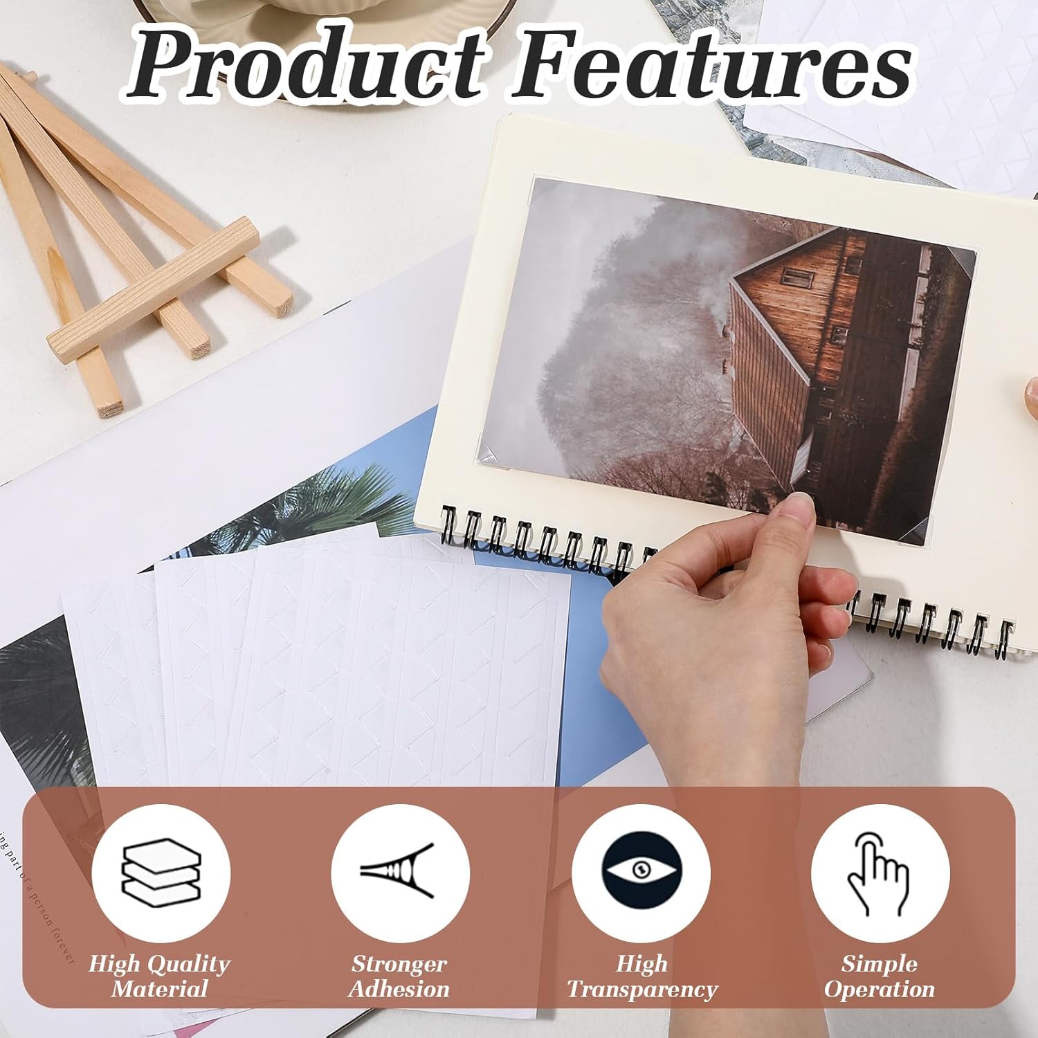 - Photo Corner Stickers: With a self adhesive backing, the photo corner stickers are easy to apply, allowing you to effortlessly mount your photos without the need for additional glue