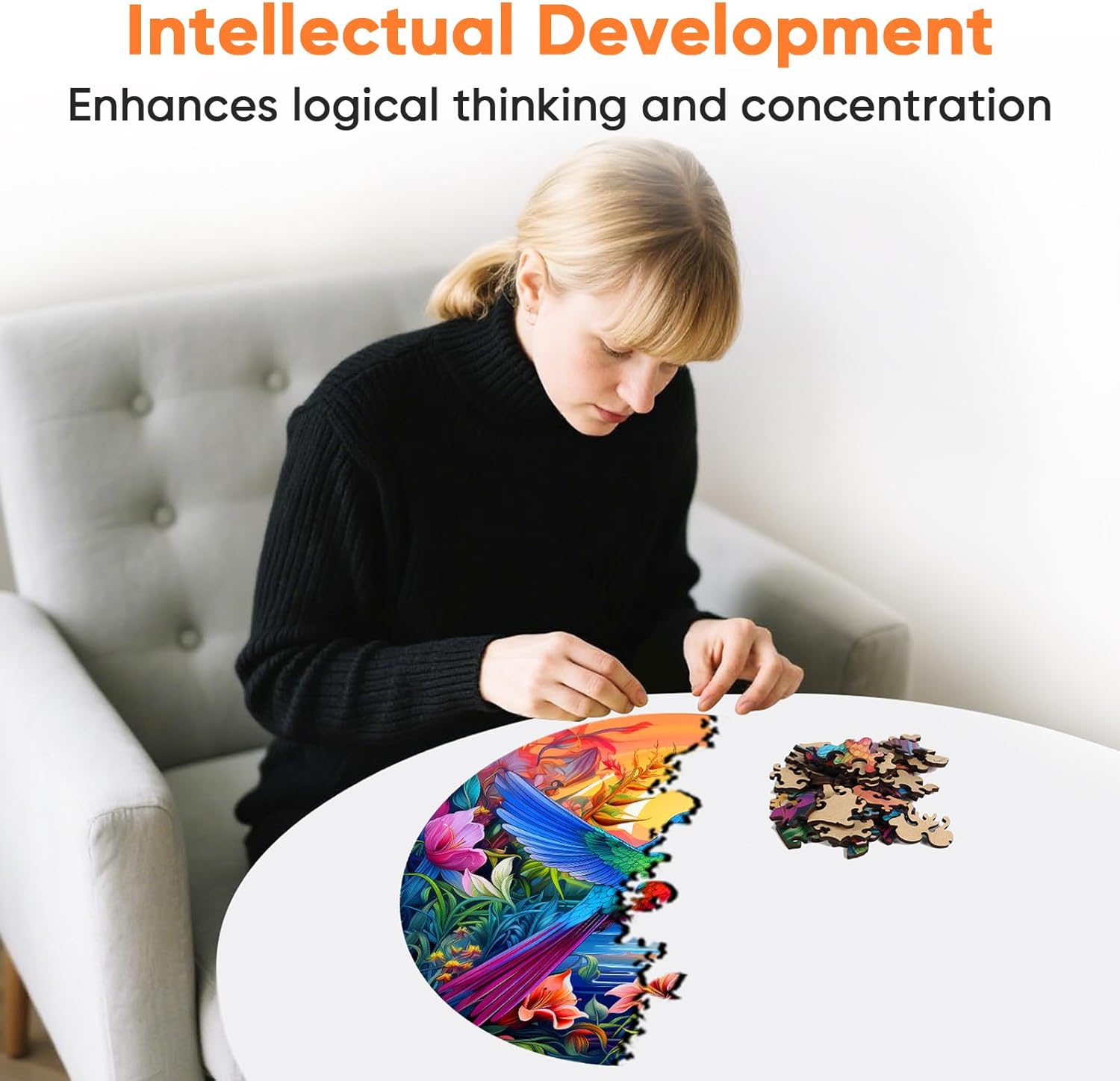 Wooden Puzzles for Adults, Hummingbird and Flower Puzzles 200 Pieces, Unique Shaped Jigsaw Puzzles for Adults and Kids, Birthday Gifts Fun Challenge Family Game 11.2'' x 11.2''
