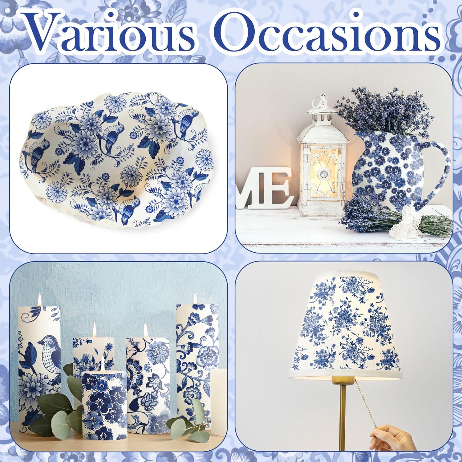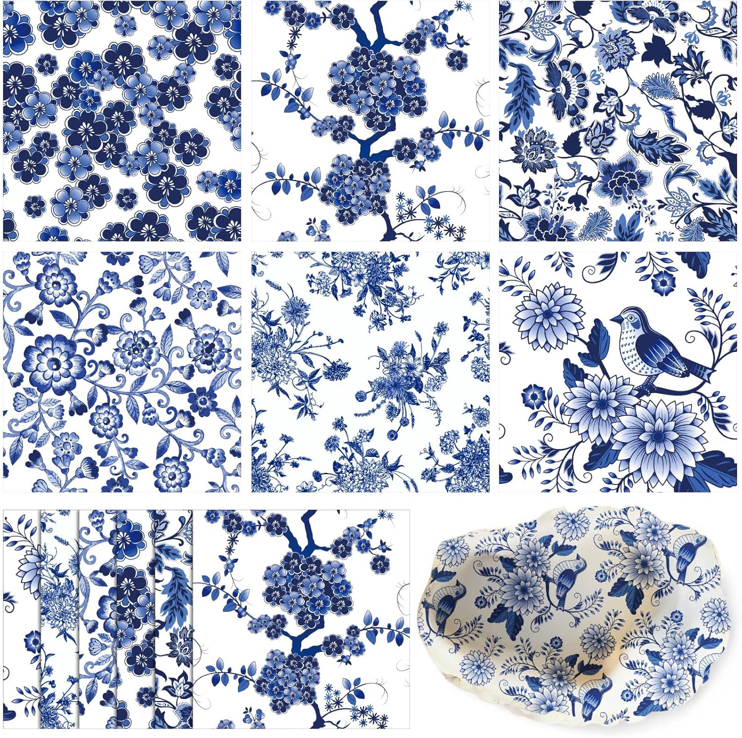 - 6 Styles to Choose: this collection features 36 decoupage napkins showcasing 6 distinct blue and white floral designs, 6 pcs per design, easily meet your daily use and replacement needs, you can also share them with family and friends