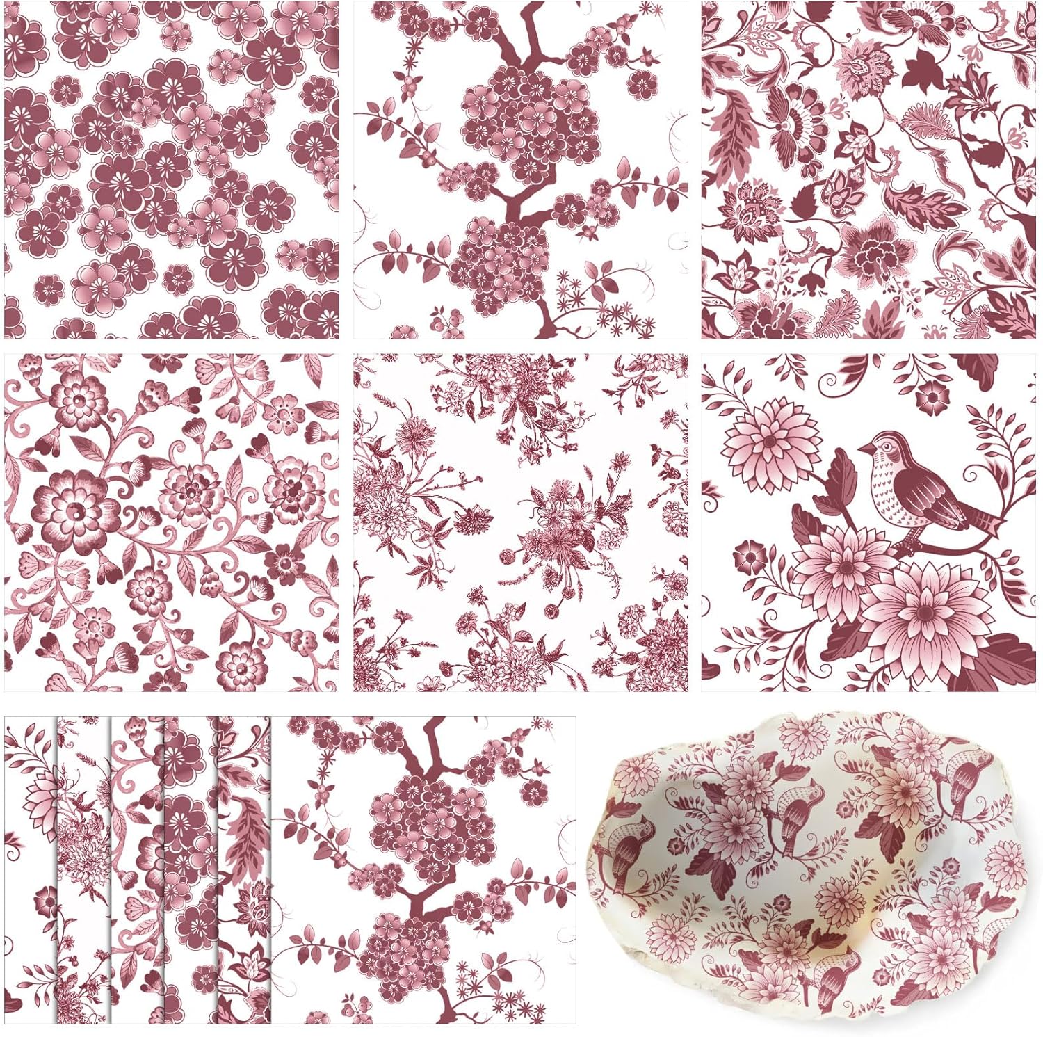 - Assorted Exquisite Floral Prints: adorned with detailed, fluid, and realistic chinoiserie floral prints in red and white, this vintage decoupage paper elevates any item you decorate and convey your aesthetics