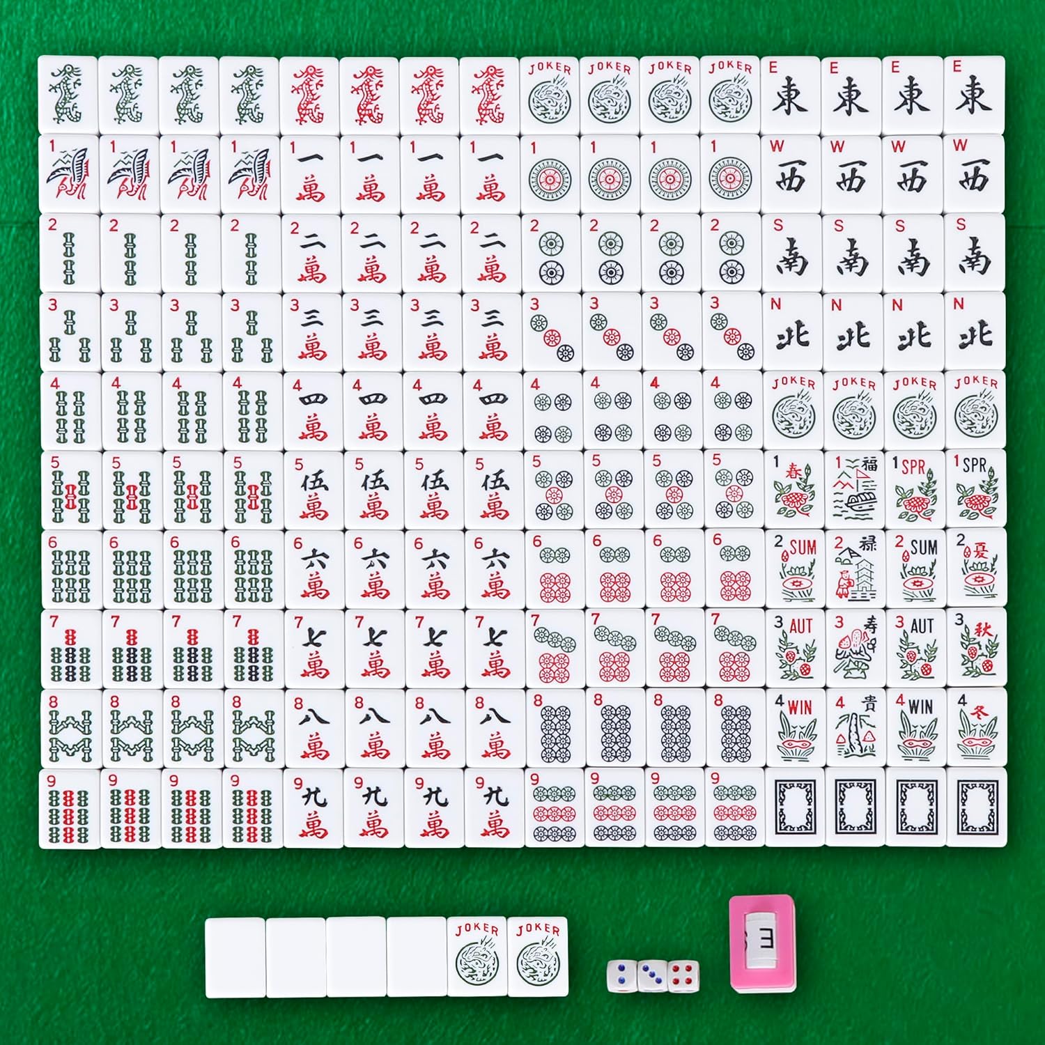 - 【Full Set of Accessories Included】- Everything you need to play is included: 166 fully engraved Mahjong tiles (36 Dots, 36 Bams, 36 Cracks, 12 Dragons, 16 Winds, 16 Flowers, 10 Jokers, and 4 Blank Spares). The set also comes with 3 dice, 100 money chips, a bettor, and a detailed Mah Jongg manual, making it perfect for both beginners and seasoned players alike