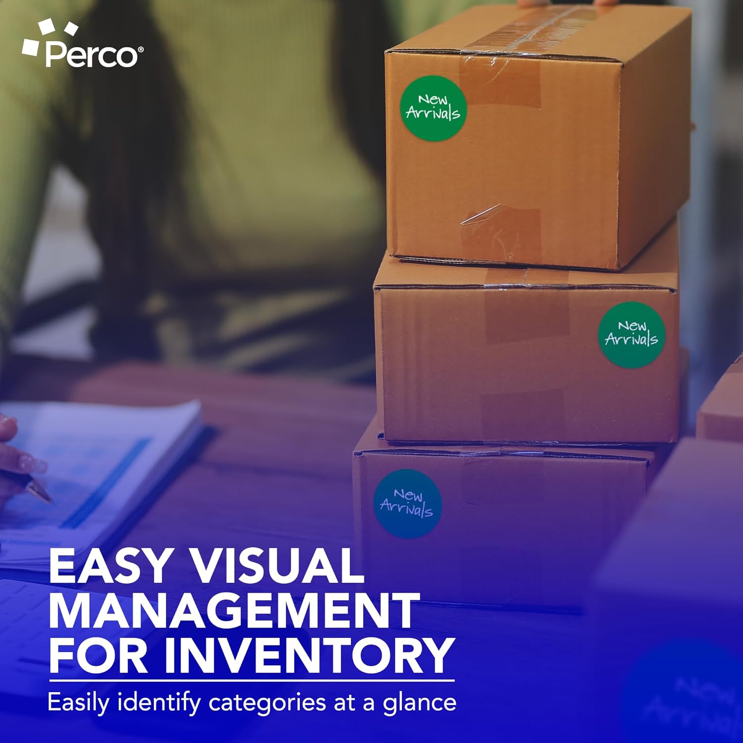 Perco Green 3-Inch Perforated Circle Dot Sticker Labels — 10 Rolls, 5,000 Round Stickers — with Permanent Adhesive for Moving Boxes, Sale Signage, Displays, Status Messaging—Made in USA