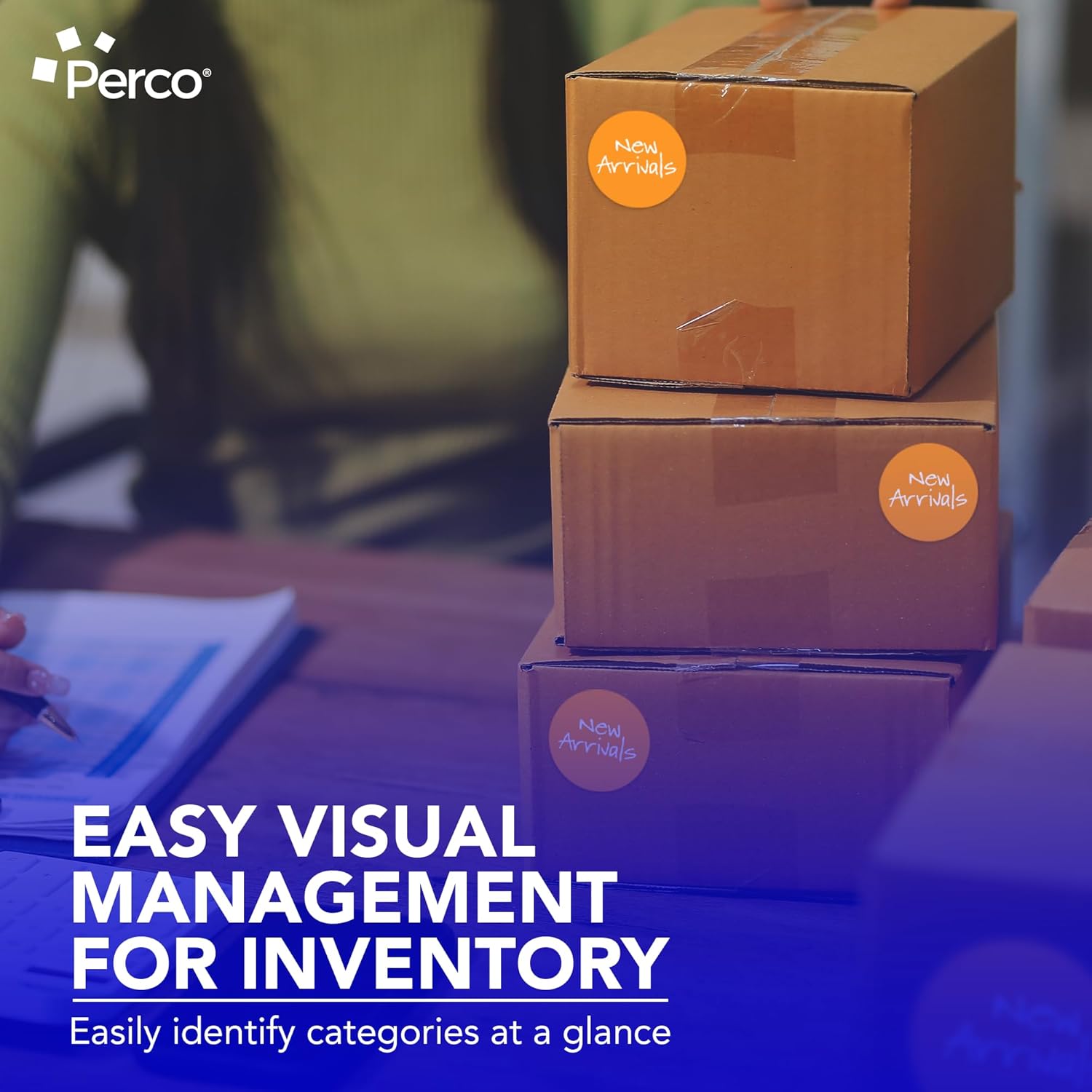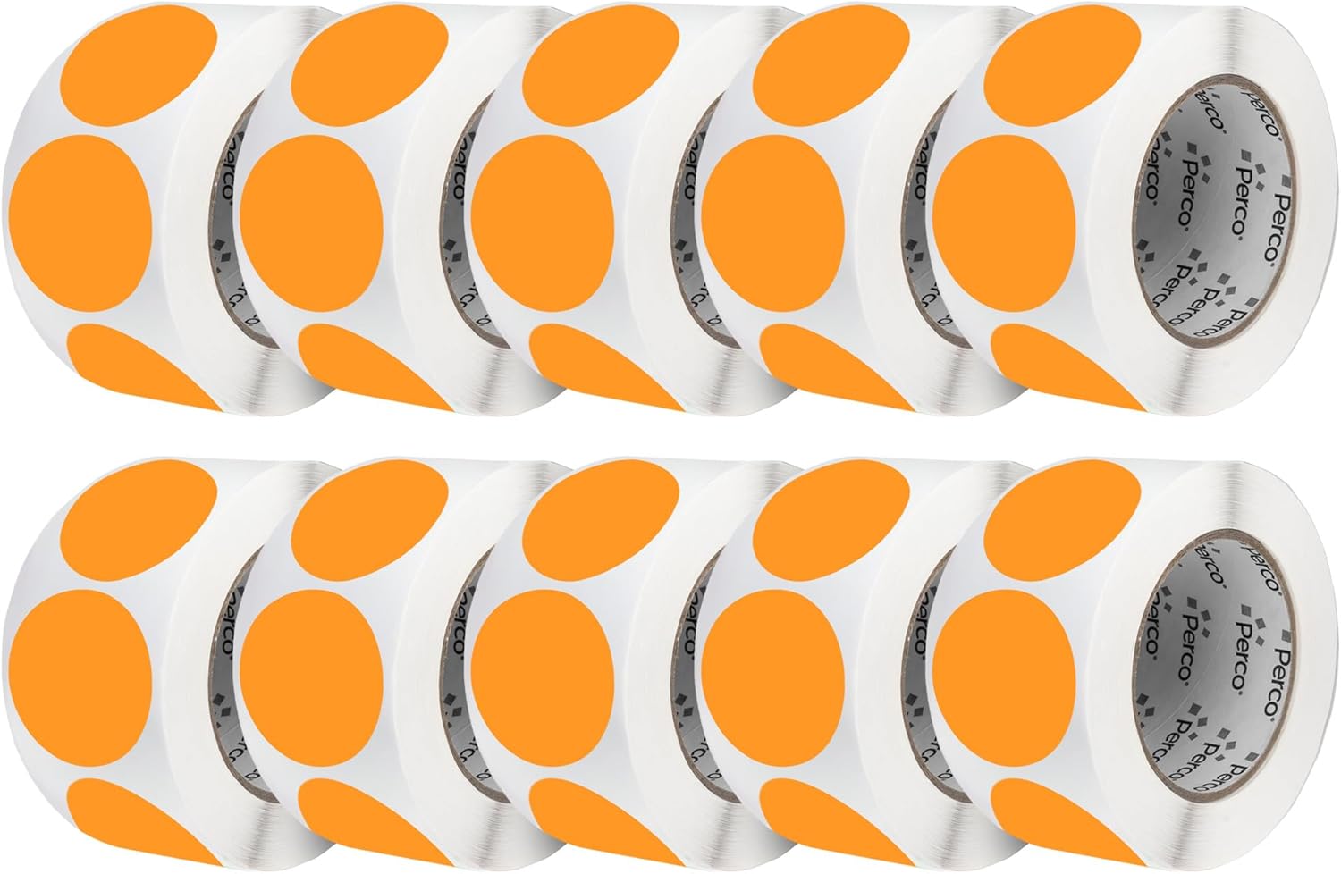 Perco Fluorescent Orange 3-Inch Perforated Circle Dot Sticker Labels — 10 Rolls, 5,000 Round Stickers — with Permanent Adhesive for Moving Boxes, Sale Signage, Displays, Status Messaging—Made in USA