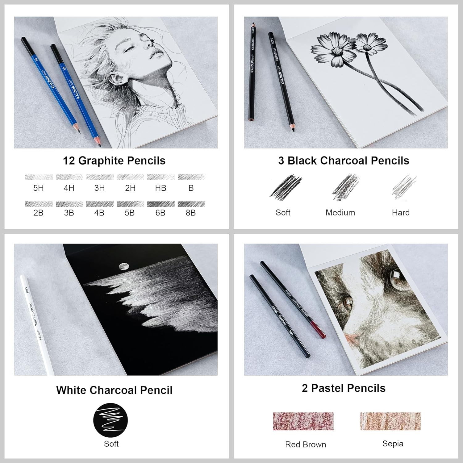 KALOUR 135 Drawing Set Sketching Kit,Art Supplies with 3-color Sketchbook & Coloring Paper,Include Tutorial, Oil Based, Neon,Graphite, Charcoal, Watercolor & Metallic Pencil,for Artist Adults Beginner