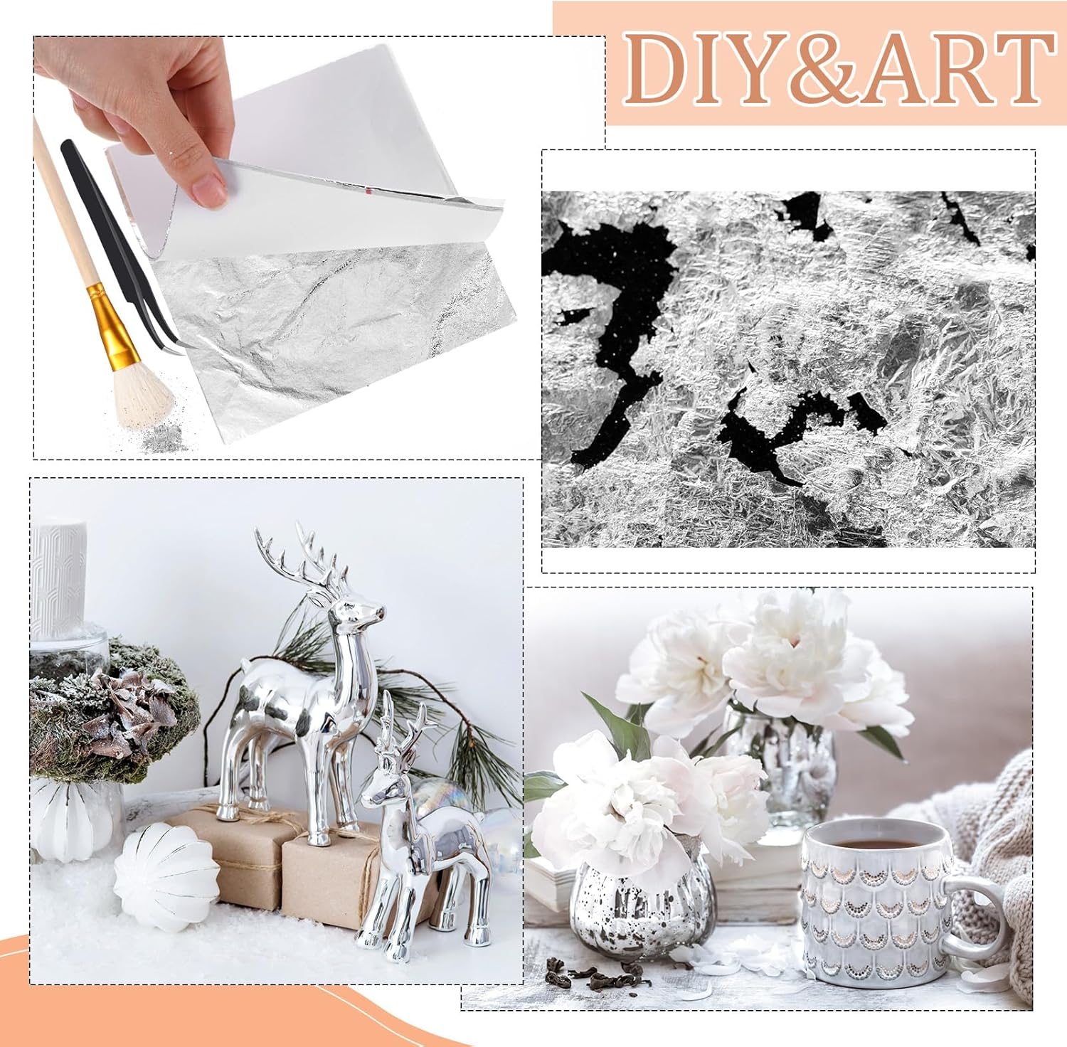- Satisfy Your Handmade Apply: the package contains 200 sheets of imitation silver gold foil sheets and 1 type of gilding brush and a pair of tweezers, each silver gold leaf measures approx 5.5 x 5.5 inches/ 14 x 14 cm; This wooden handle gilding brush measures 7.87 x 1.18 inches; The product is enough to meet your needs