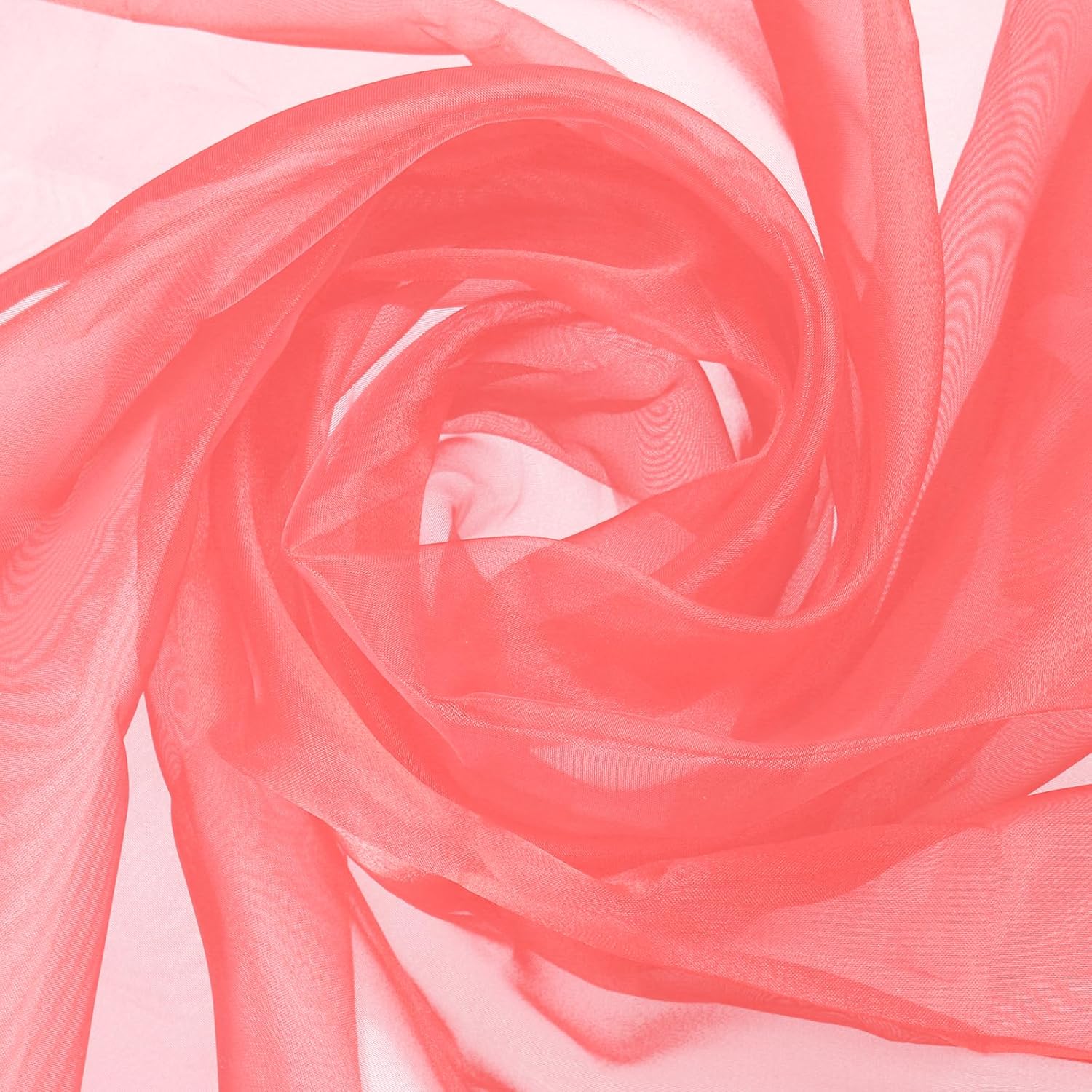 MECCANIXITY Iridescent Sheer Organza Fabric, 2 Yards x 59 Inches Solid Holographic Shiny Fabric Organza Cloth for Wedding, Curtains, Costume, Photo Background, Watermelon Red