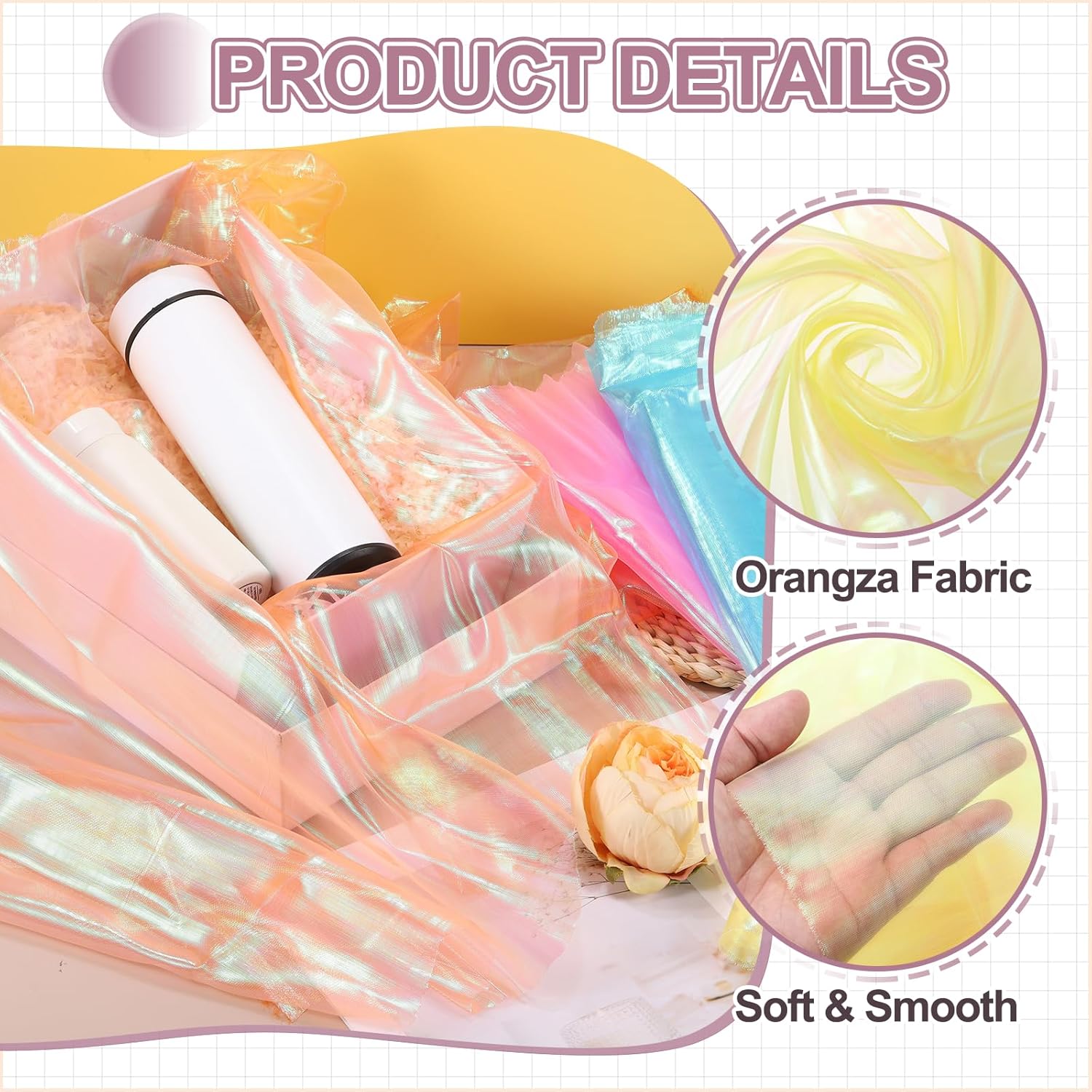 - Elevate your creative vision with this iridescent organza fabric, blending functionality and elegant beauty. Perfect for bridal wear, home decoration, curtains, table runners, event backdrops, floral arrangements, and DIY crafts.
