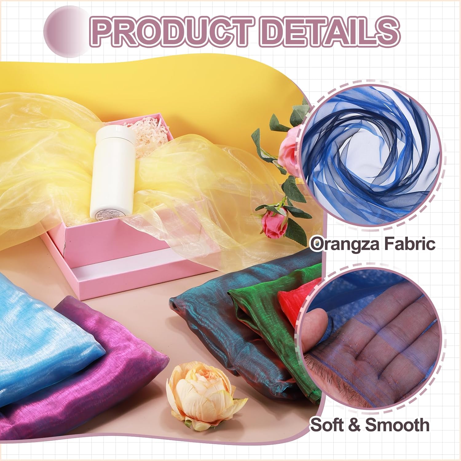 - Elevate your creative vision with this iridescent organza fabric, blending functionality and elegant beauty. Perfect for bridal wear, home decoration, curtains, table runners, event backdrops, floral arrangements, and DIY crafts.