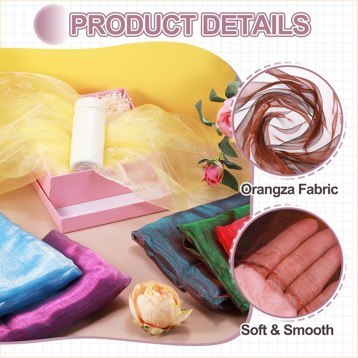 - Elevate your creative vision with this iridescent organza fabric, blending functionality and elegant beauty. Perfect for bridal wear, home decoration, curtains, table runners, event backdrops, floral arrangements, and DIY crafts.