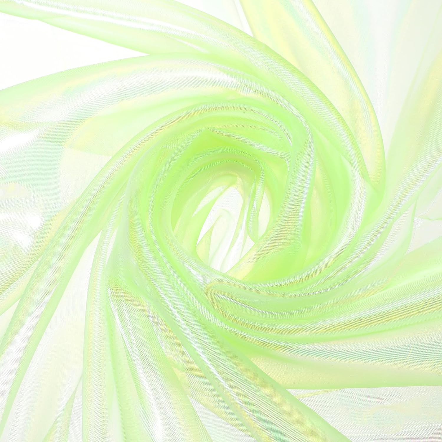 MECCANIXITY Iridescent Sheer Organza Fabric, 2 Yards x 59 Inches Solid Laser Holographic Shiny Fabric Organza Cloth for Wedding, Curtains, Costume, Photo Background, Bright Yellow