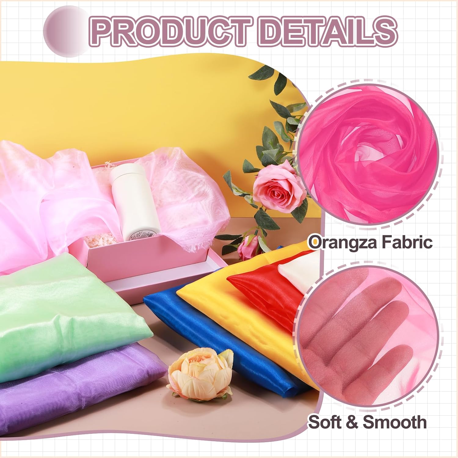 - The organza fabric is in the size of 10 yards x 59 inches/ 9.1m x 150cm (LxW), providing ample fabric for large-scale designs, making it good for wedding dresses, curtains, or event installations.