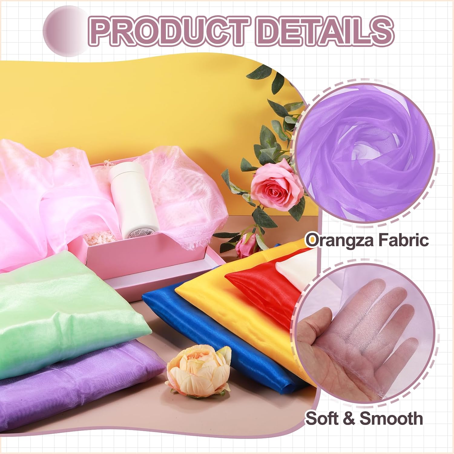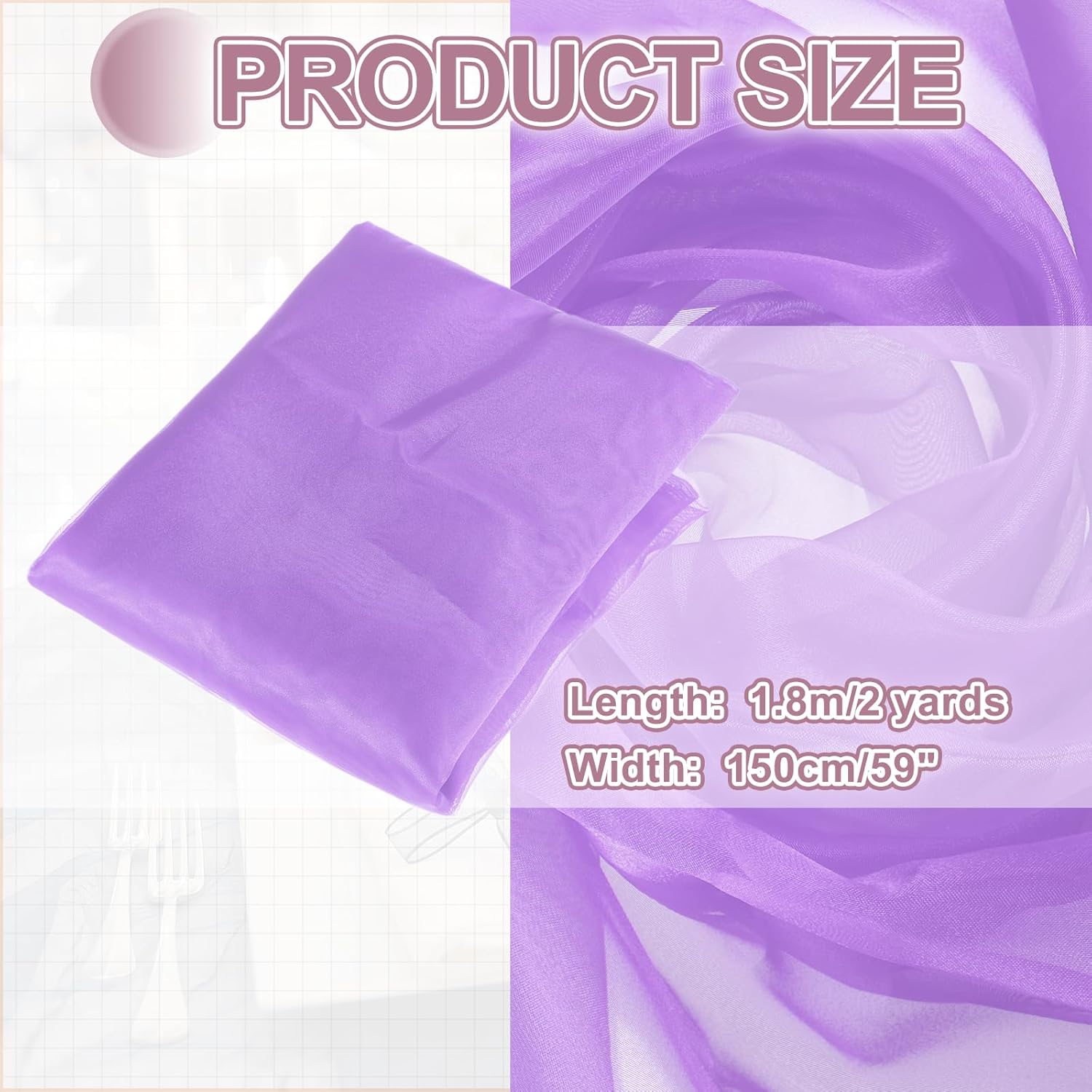 - The organza fabric is in the size of 2 yards x 59 inches/ 1.8m x 150cm (LxW), providing ample fabric for large-scale designs, making it good for wedding dresses, curtains, or event installations.