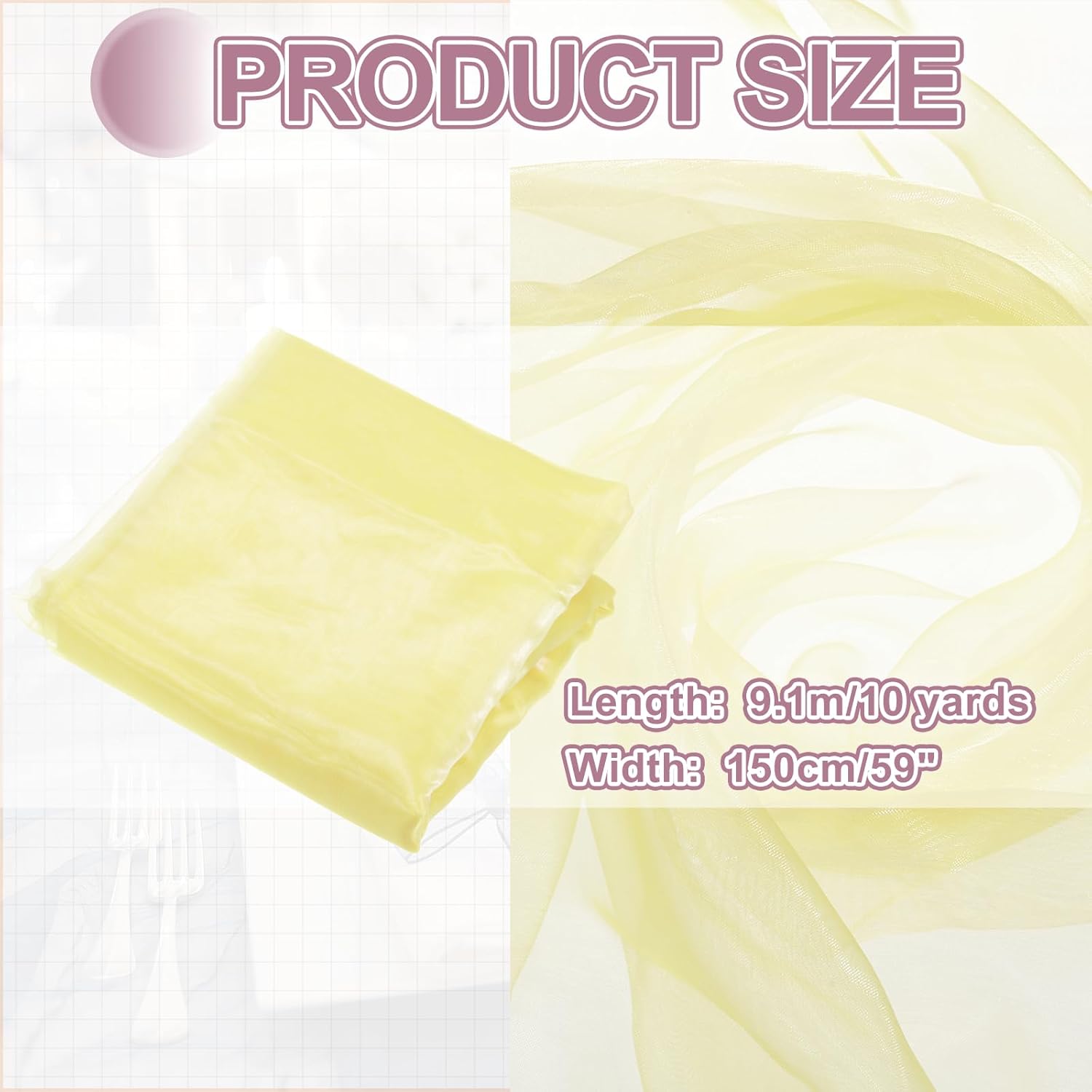 - The organza fabric is in the size of 10 yards x 59 inches/ 9.1m x 150cm (LxW), providing ample fabric for large-scale designs, making it good for wedding dresses, curtains, or event installations.